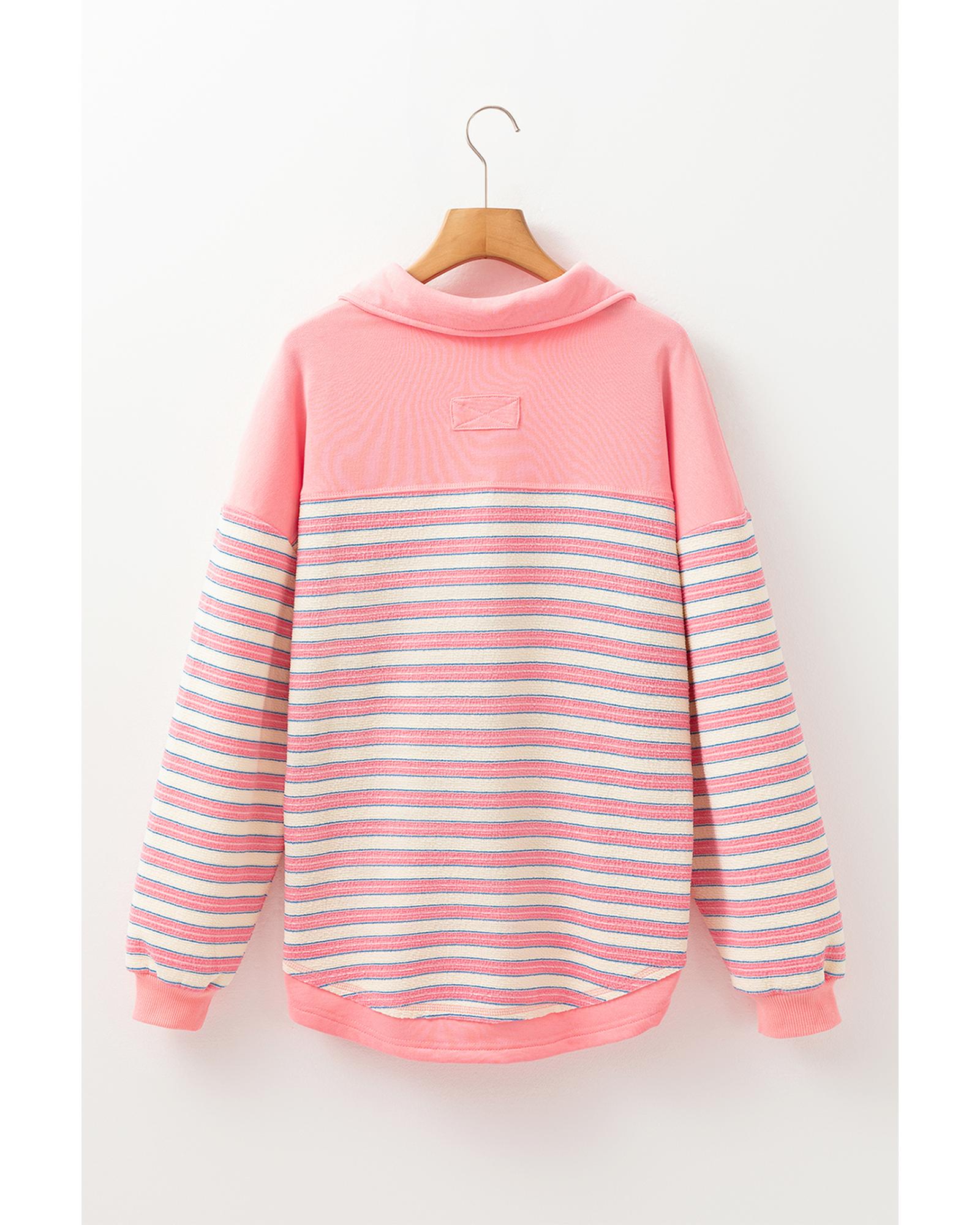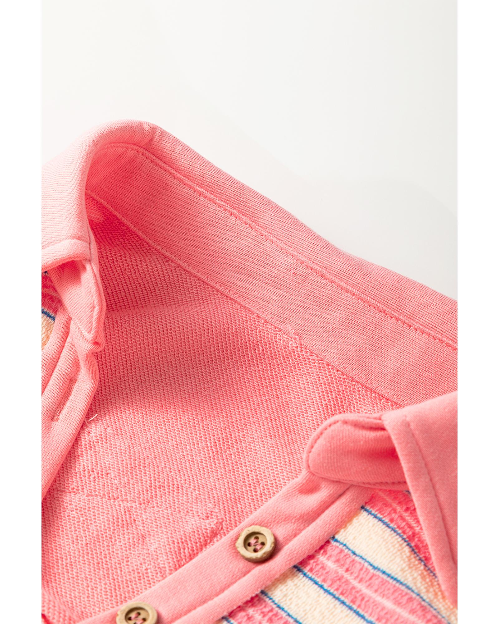 Pink Stripe Buttoned V Neck Collared Drop Shoulder Top – S