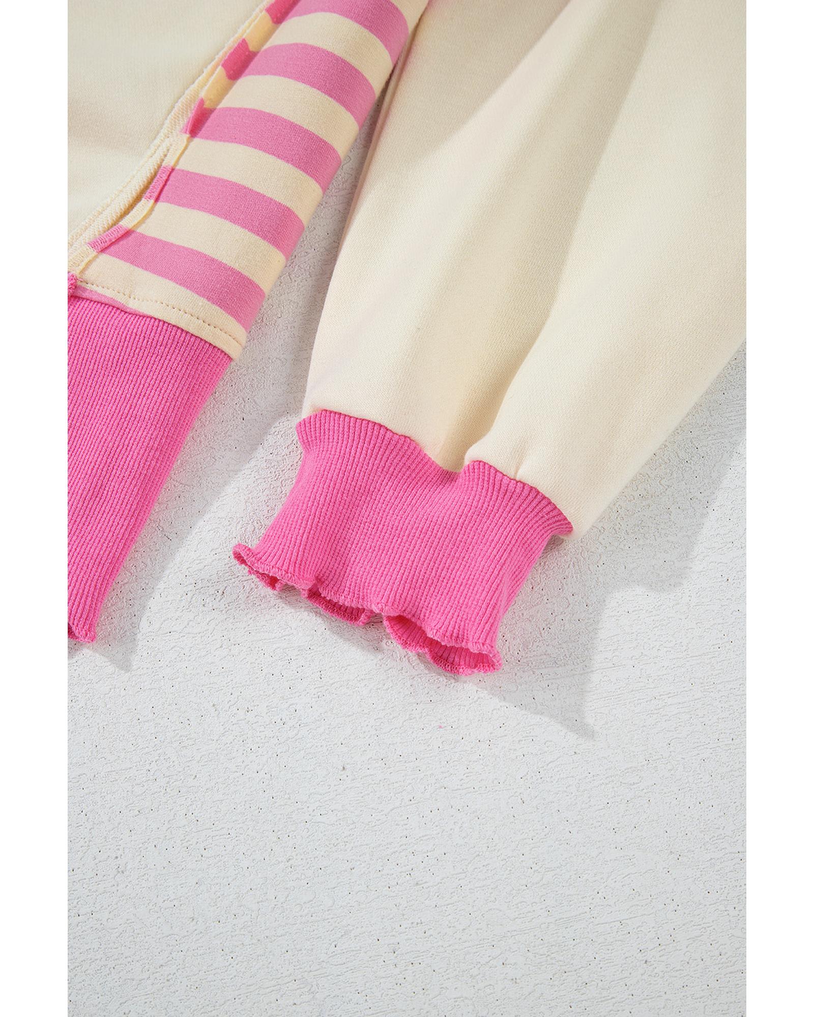 Pink Stripe Colorblock Patchwork Collared French Terry Knit Top – M
