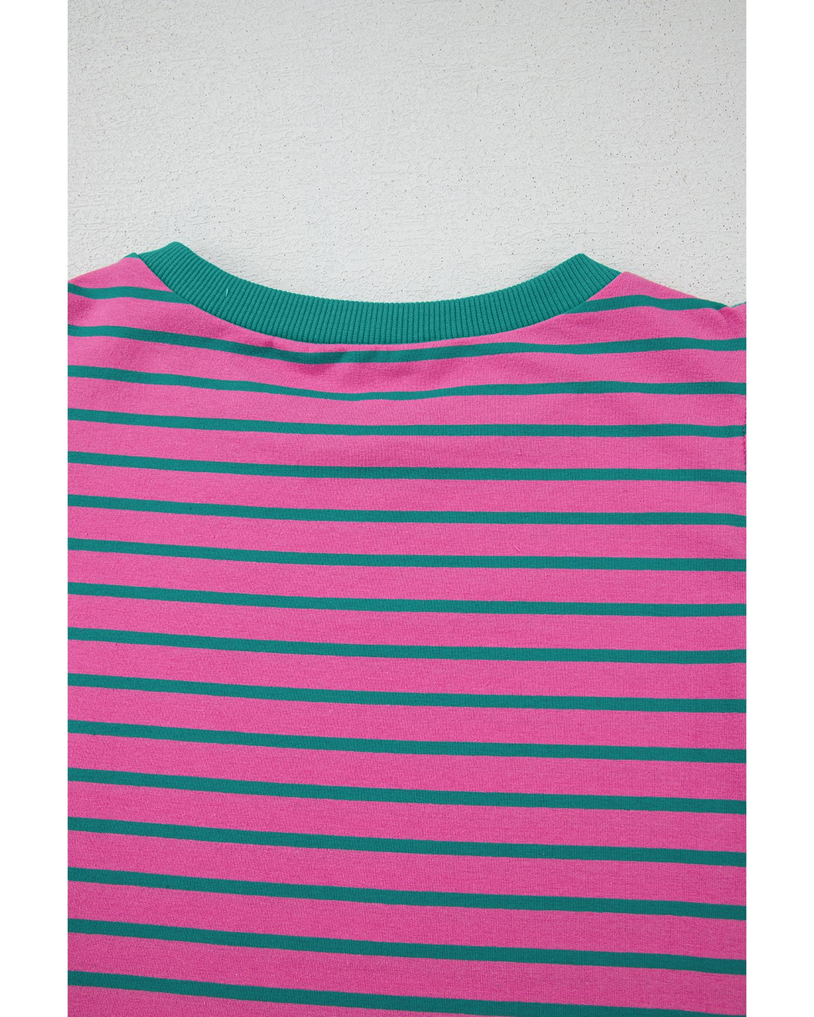 Pink Stripe Colorblock Ruffled Sleeve Crew Neck Blouse – S