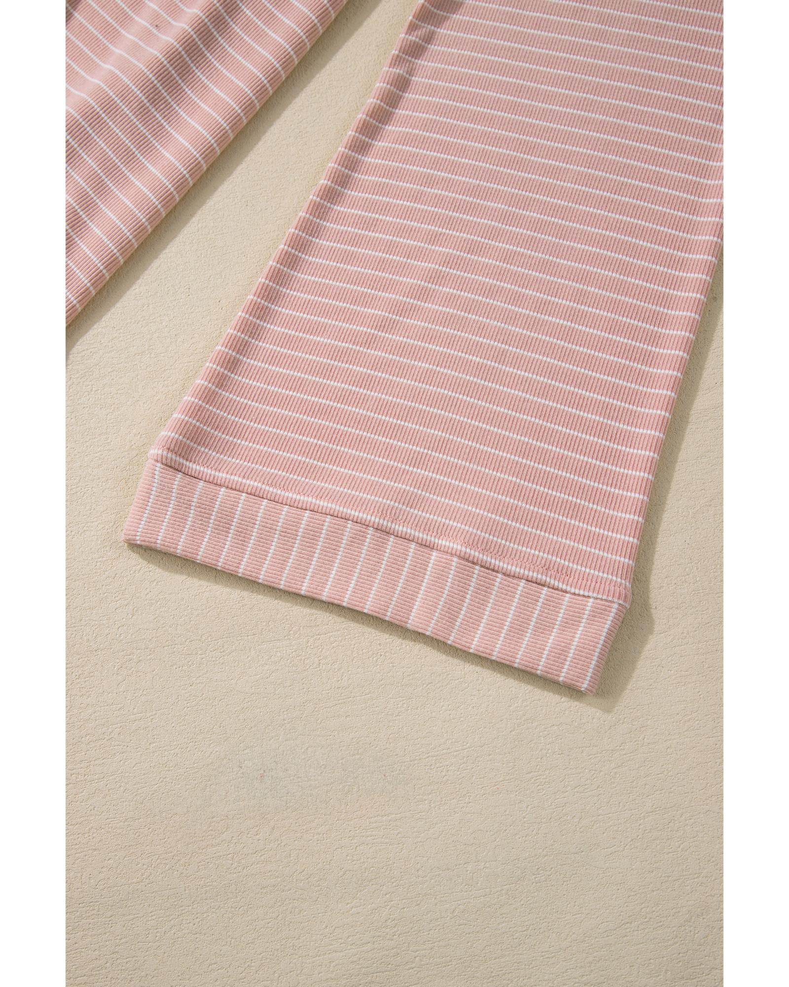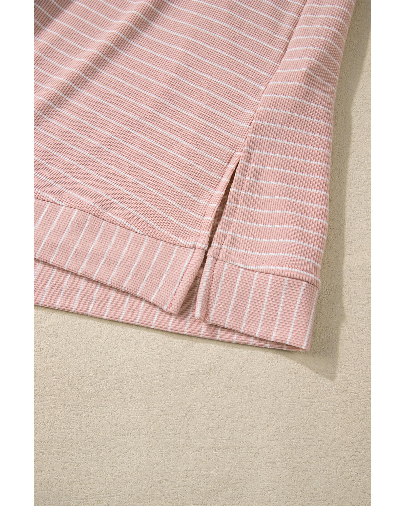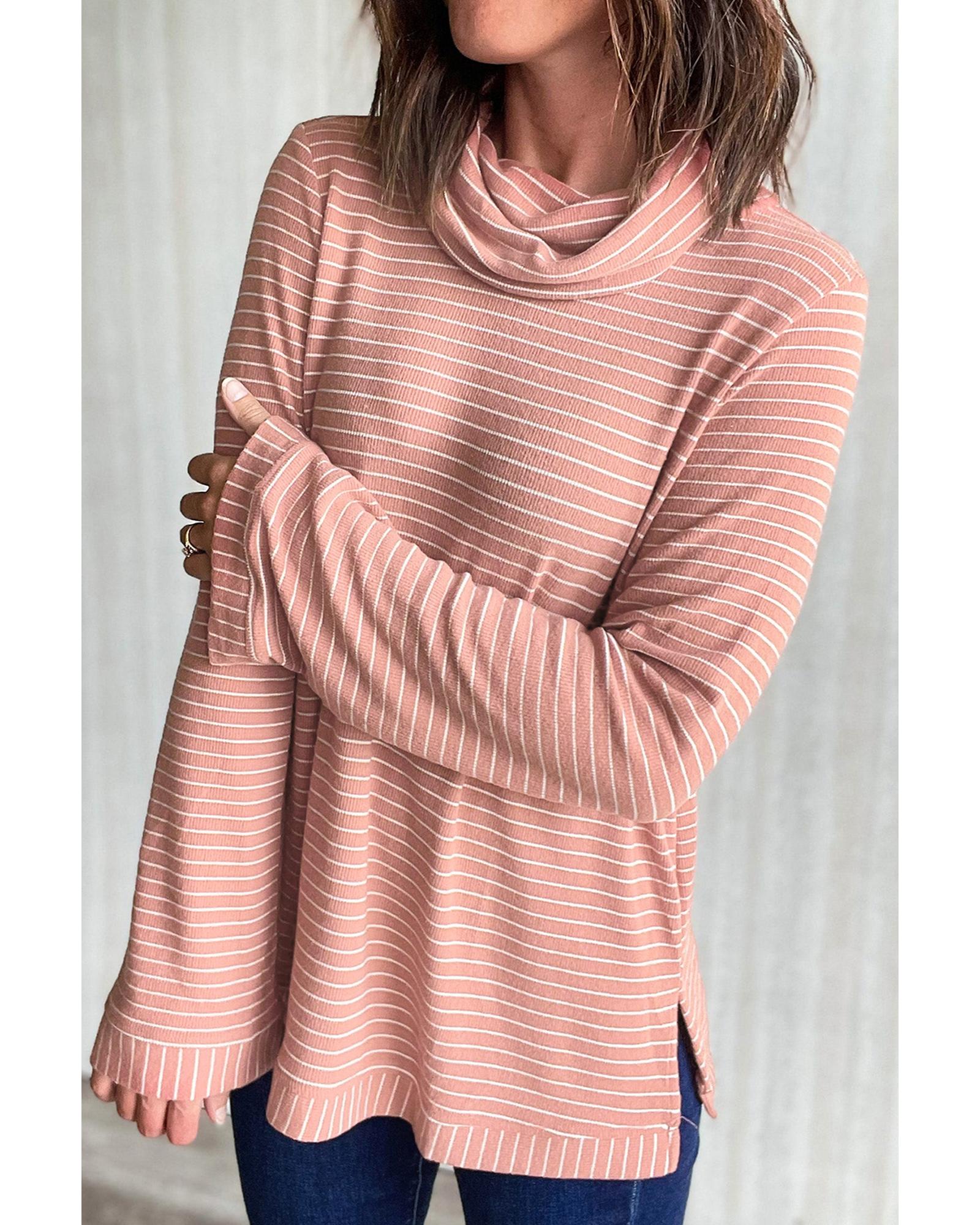 Pink Stripe Cowl Neck Side Slits Loose Fit Long Sleeve Top – S