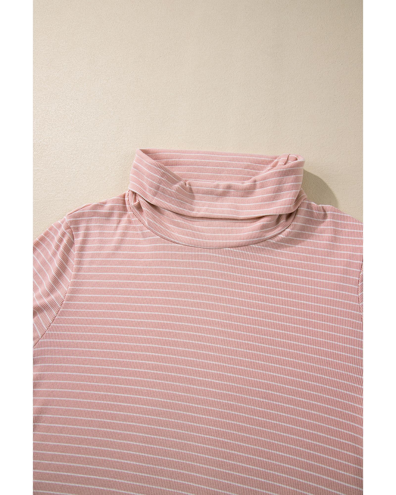 Pink Stripe Cowl Neck Side Slits Loose Fit Long Sleeve Top – XL