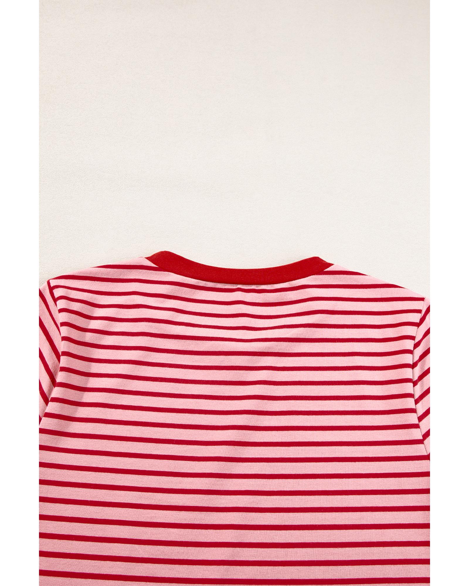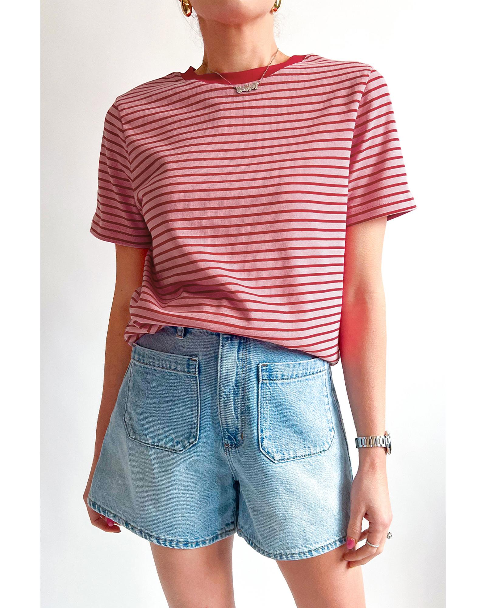 Pink Stripe Crew Neck Casual T Shirt – L