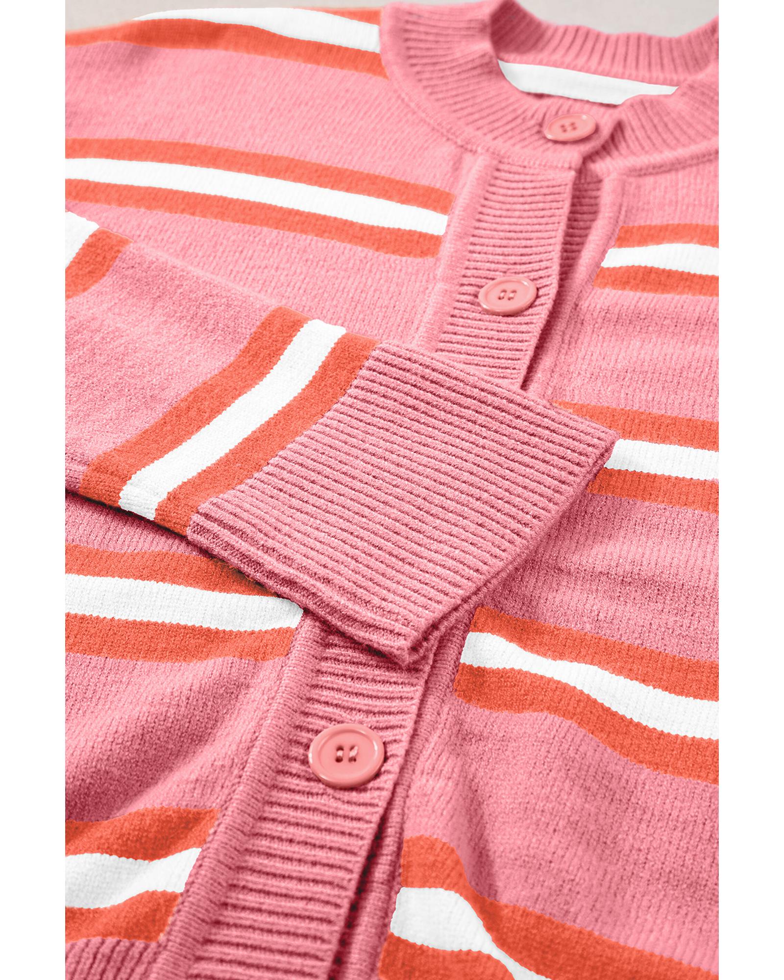 - Pink Stripe Drop Shoulder Buttons Cardigan Sweater