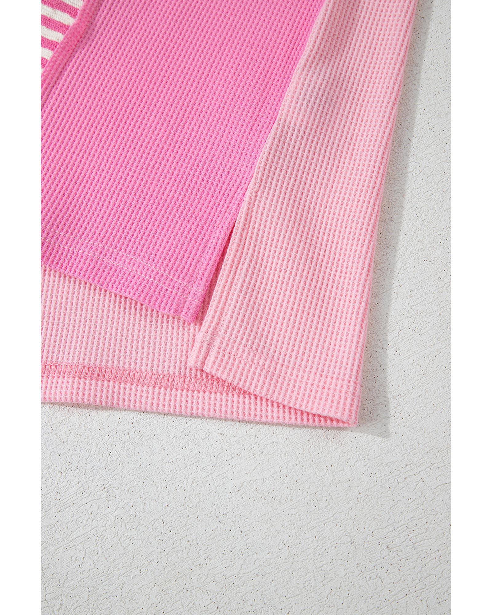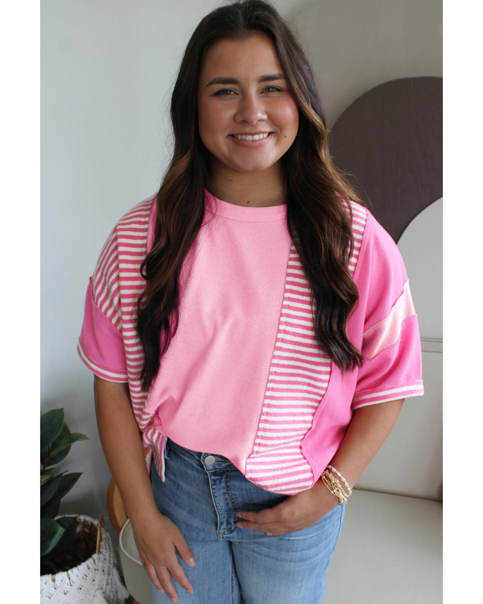 Pink Stripe Patchwork Colorblock Plus Size T Shirt – 3X
