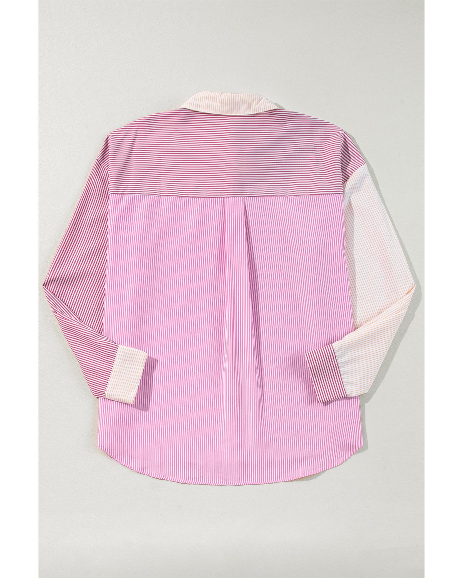 Pink Stripe Print Colorblock Plus Size Shirt – 2X