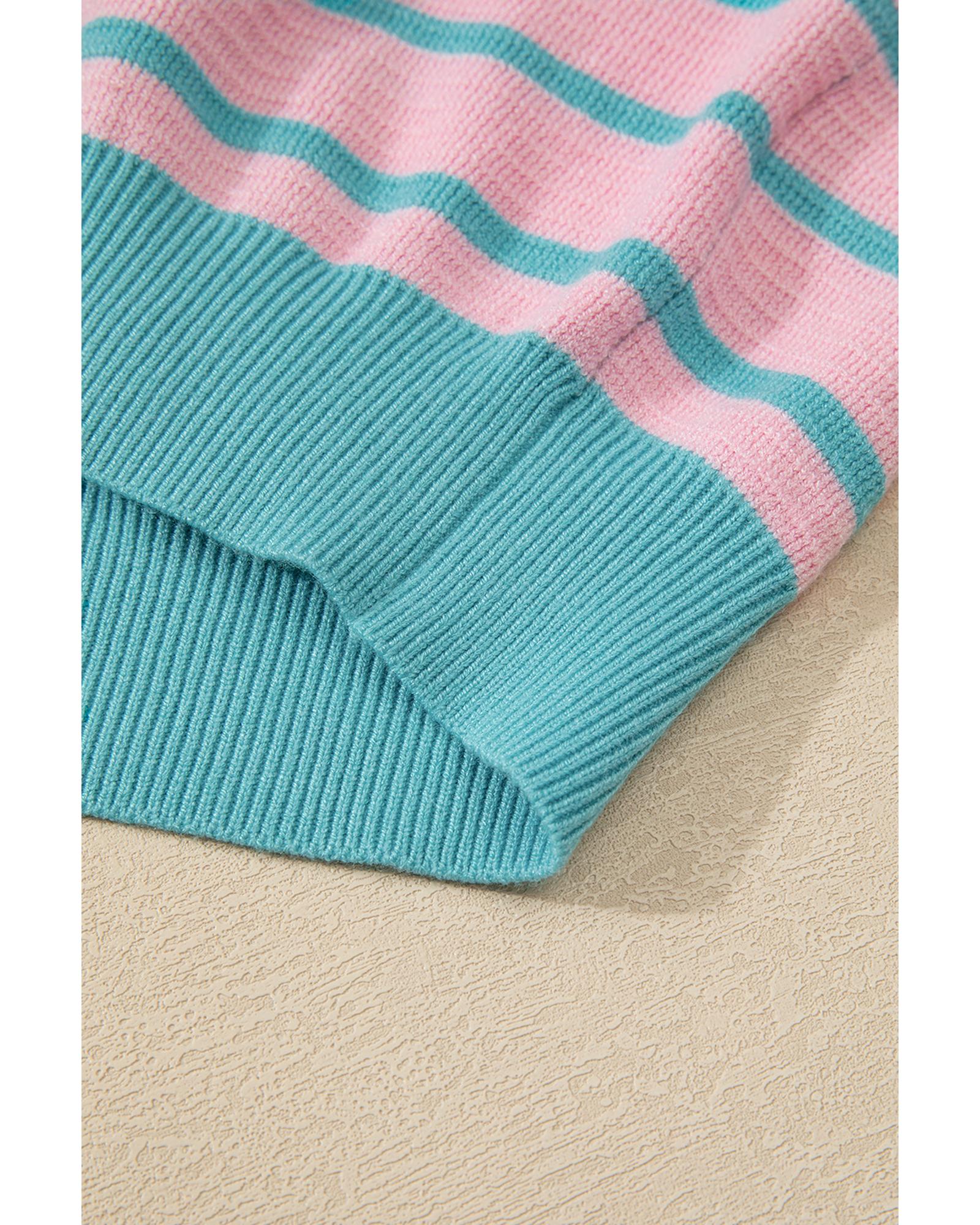 Pink Stripe Zip up Collar Drop Shoulder Sweater - XL