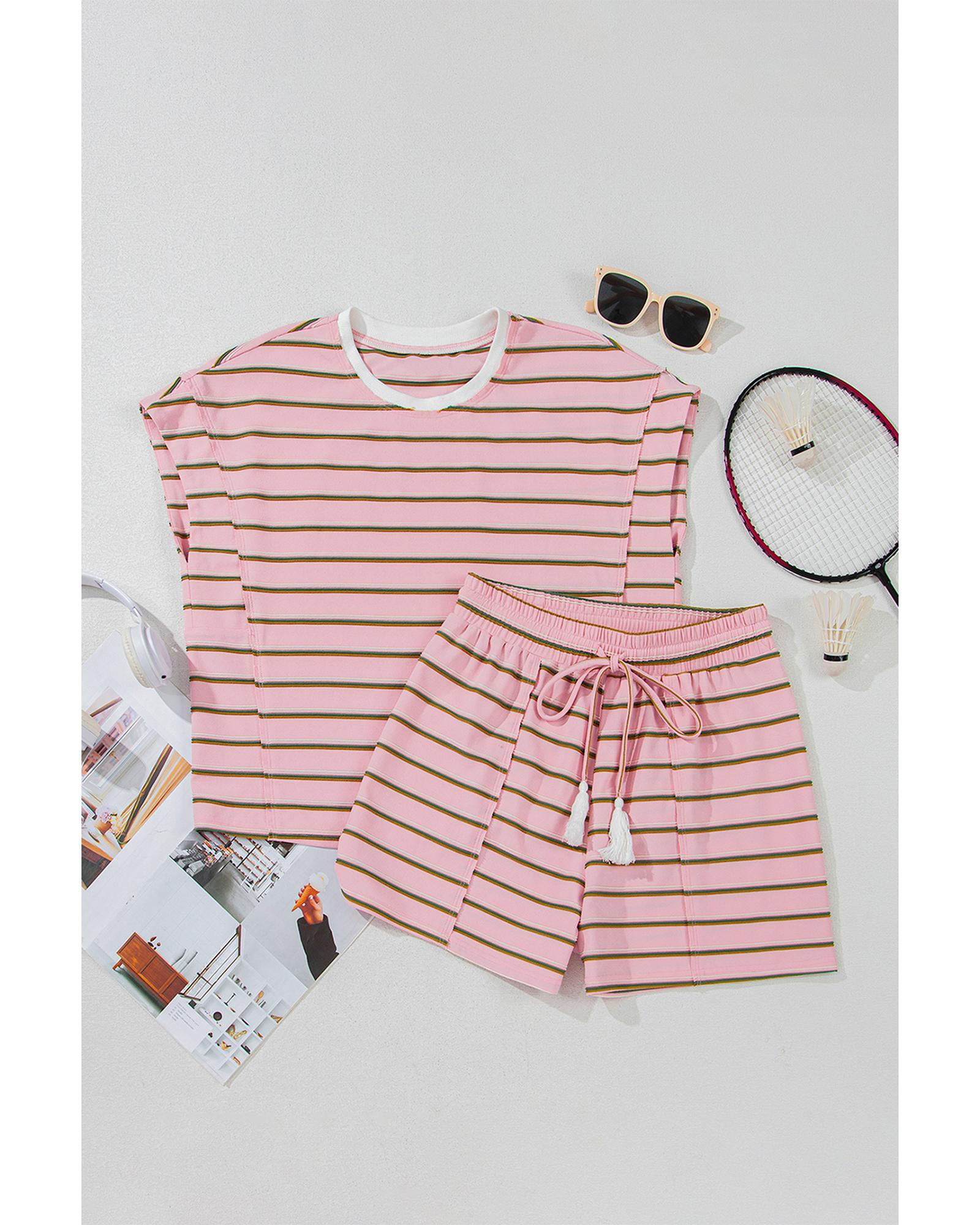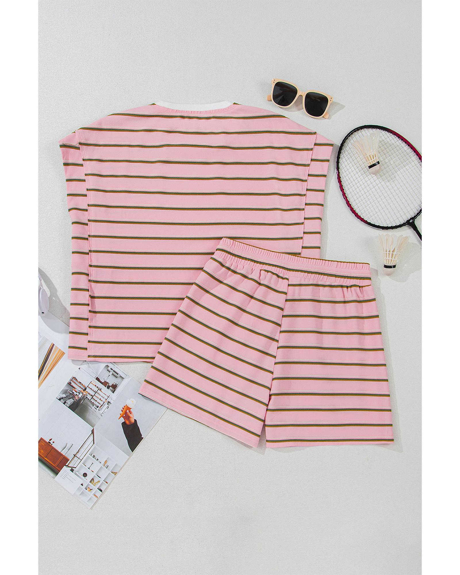 Pink Stripe Wide Short Sleeve Tee and Short Set – M