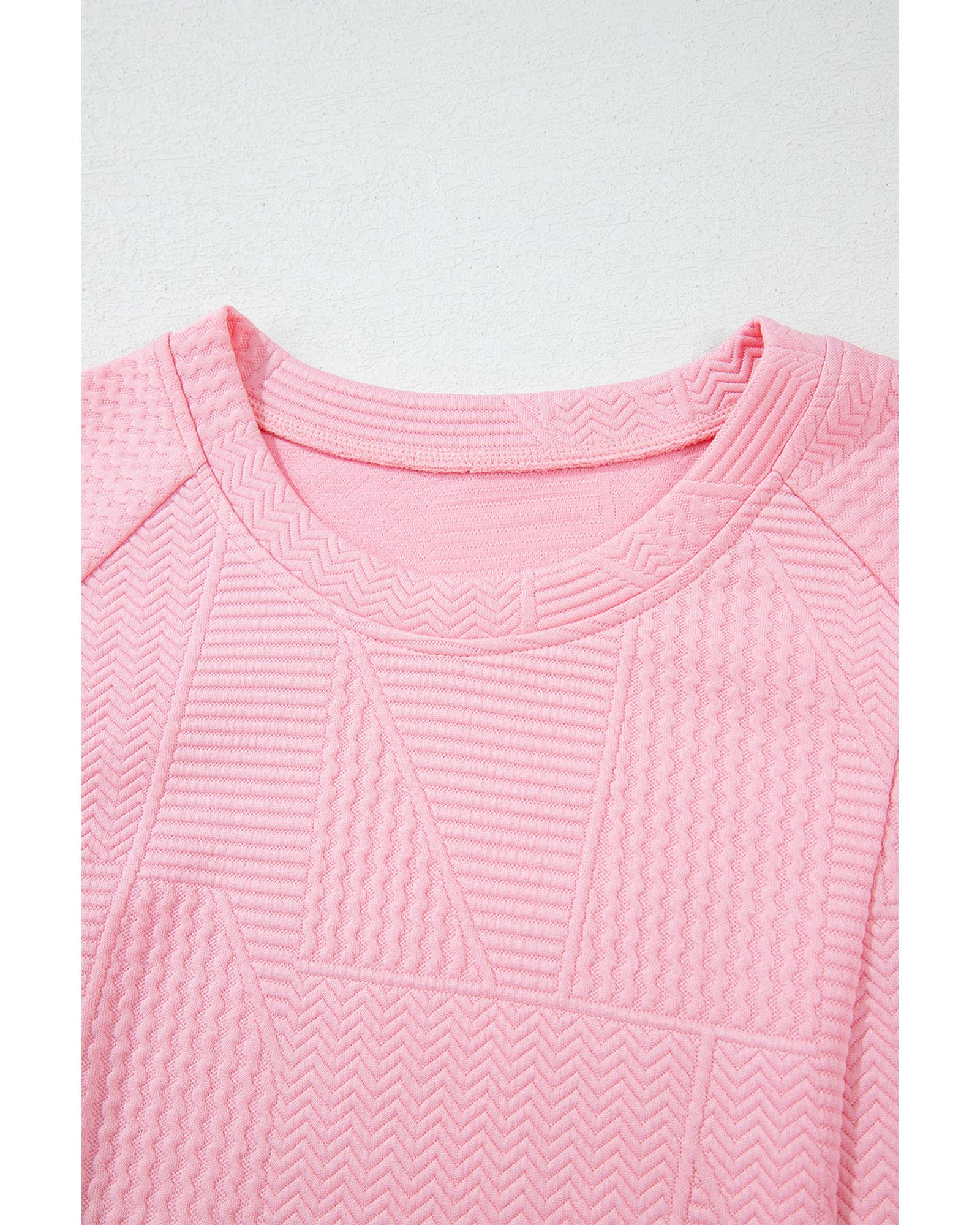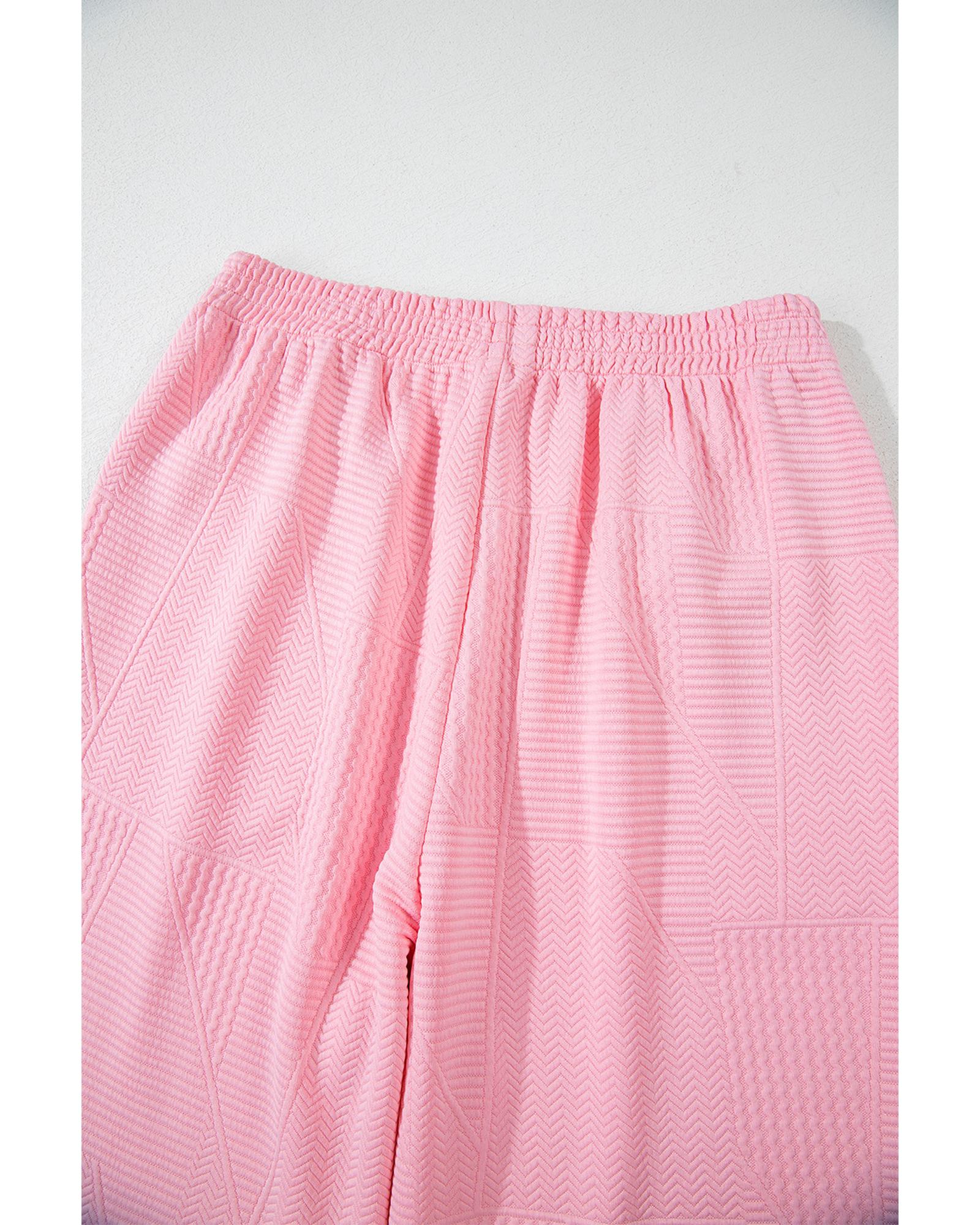 Pink Textured Pearled Ruffled Sleeve Wide Leg Pants Set – L