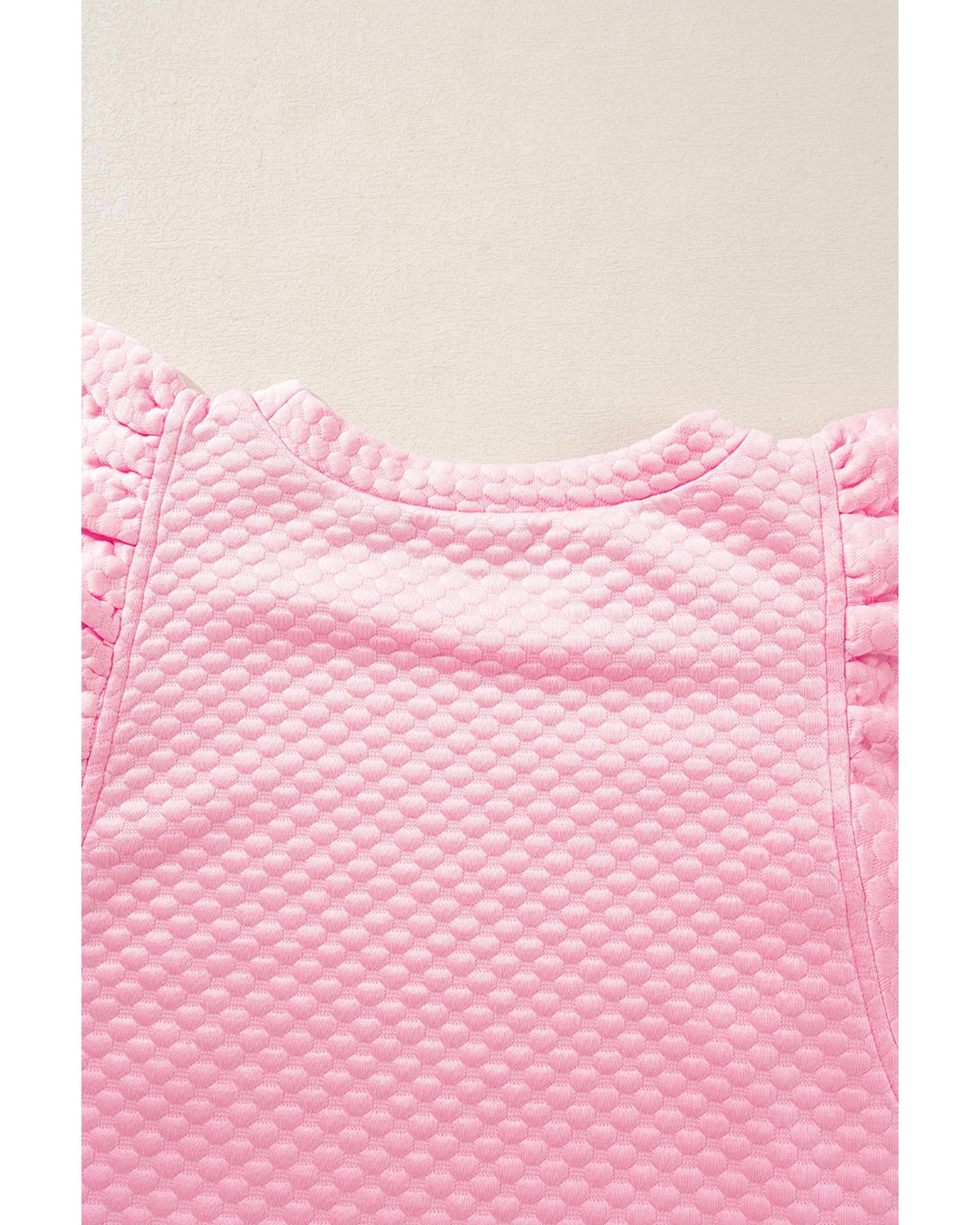 Pink Textured Ruffle Short Sleeve Pullover Top – L