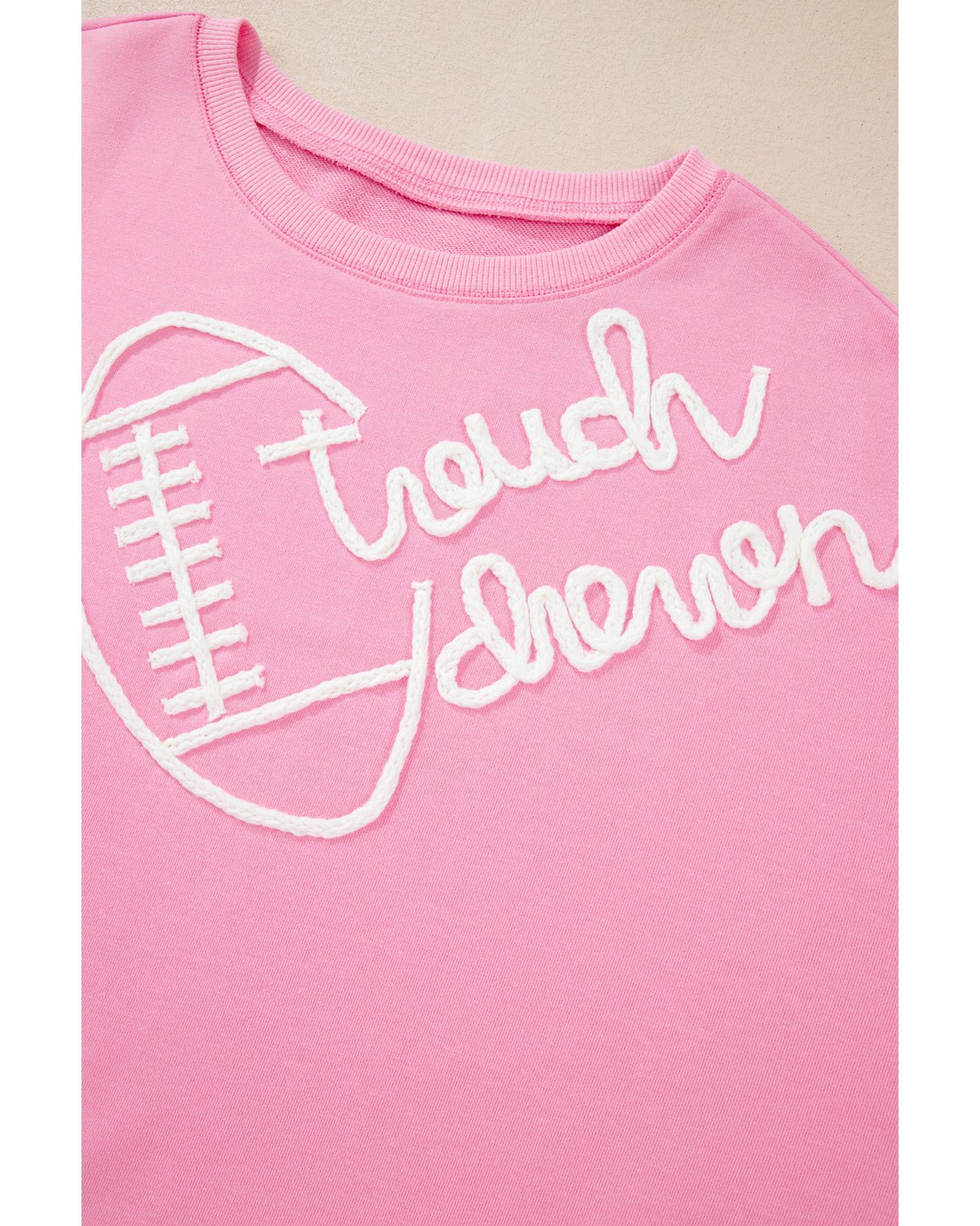 - Pink Touch Down Rugby Football Embroidered Plus Size Sweatshirt