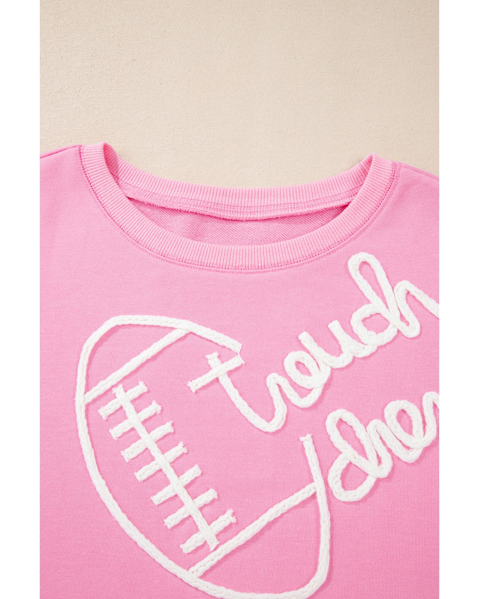 - Pink Touch Down Rugby Football Embroidered Plus Size Sweatshirt