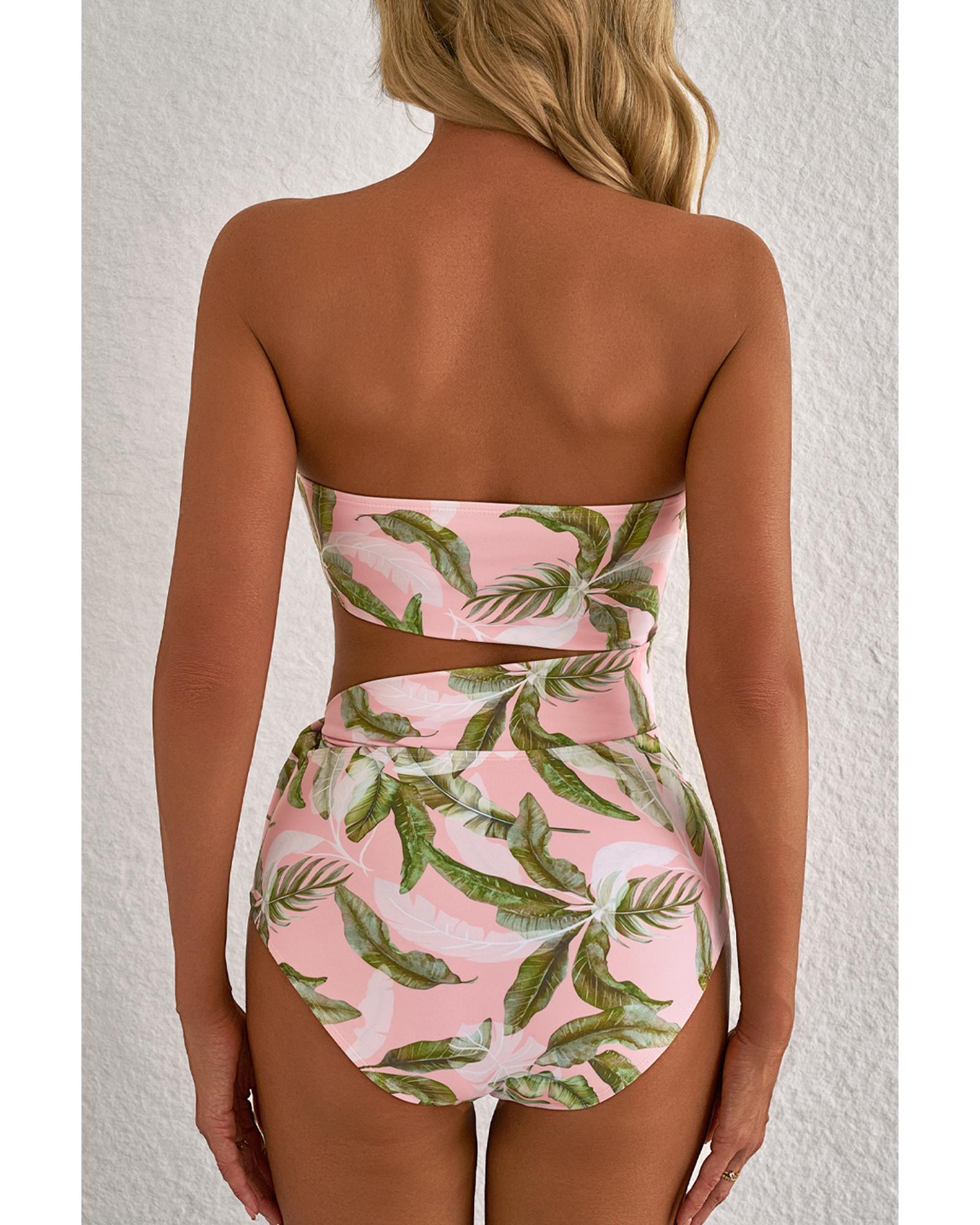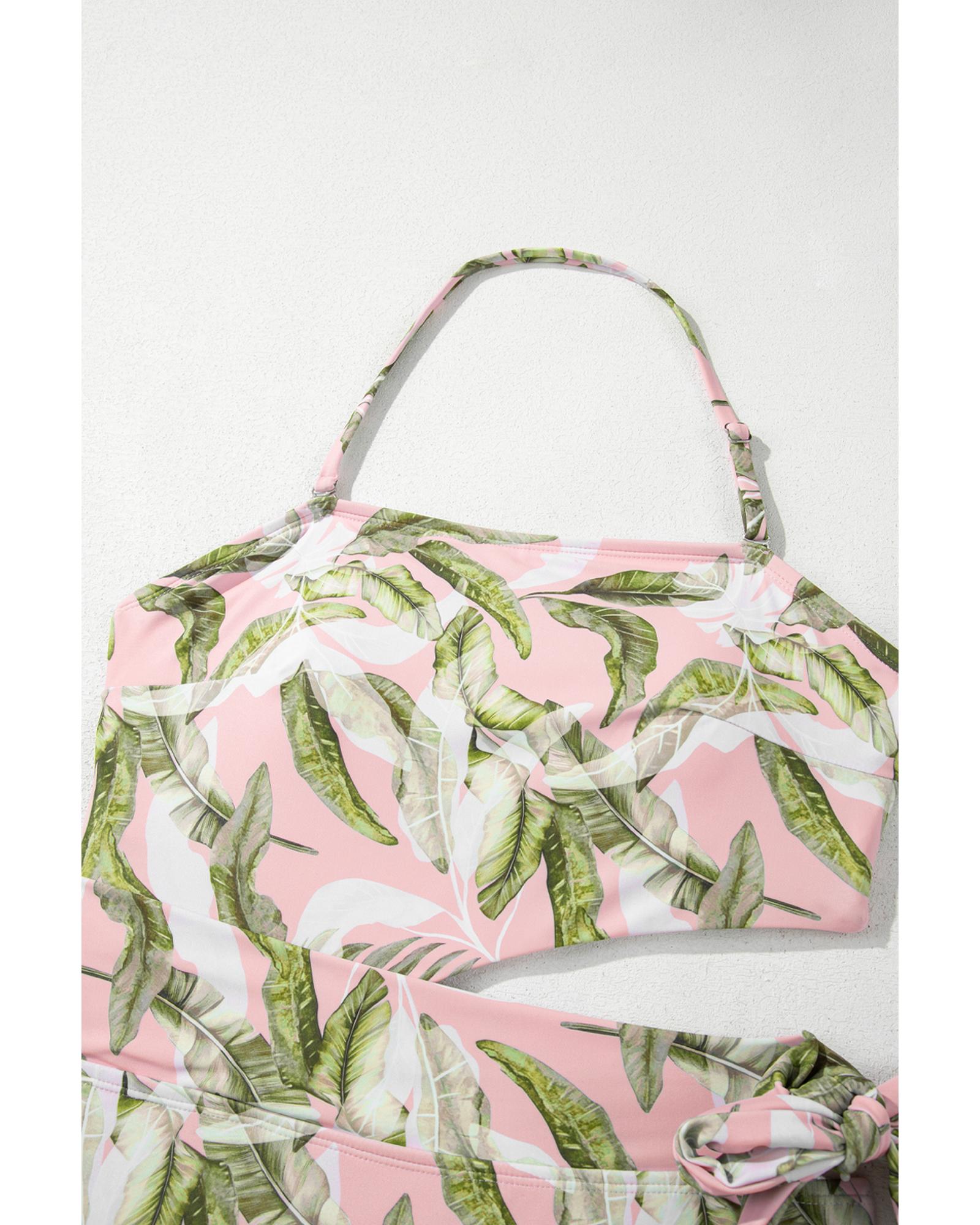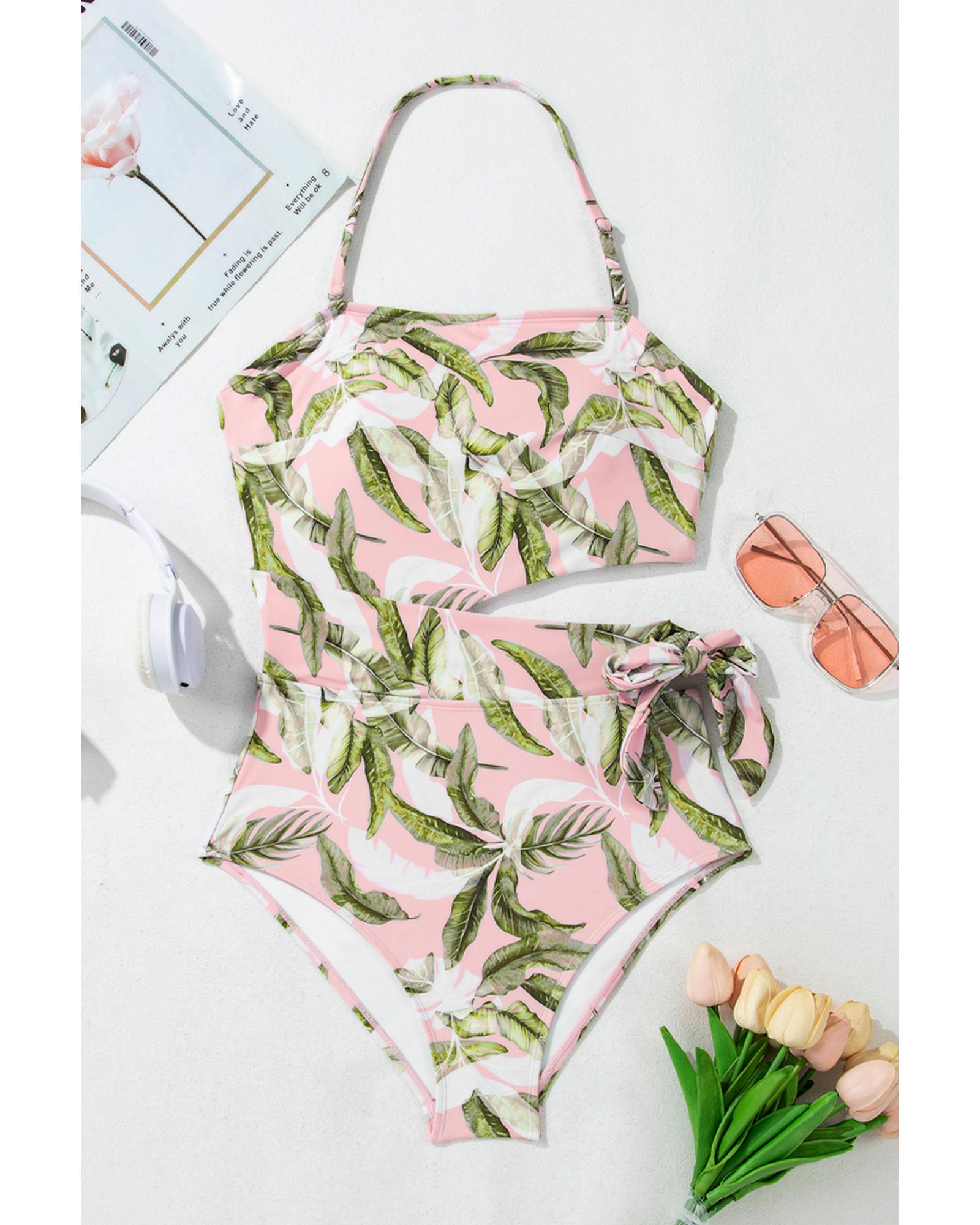 Pink Tropical Asymmetric Cut out Halter Backless One Piece Swimwear – XL