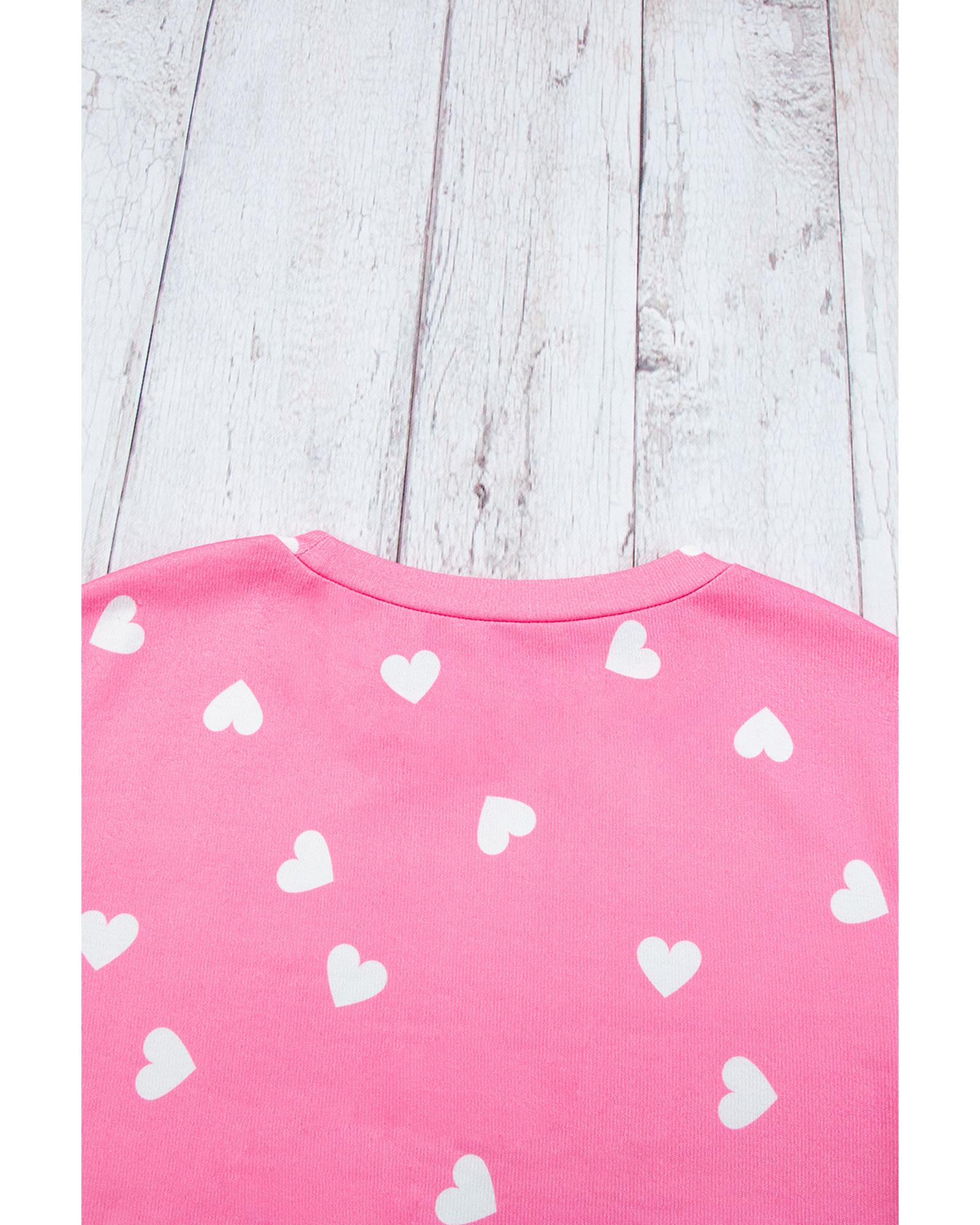 - Pink Valentine Heart Print Long Sleeve Tee and Shorts Lounge Set