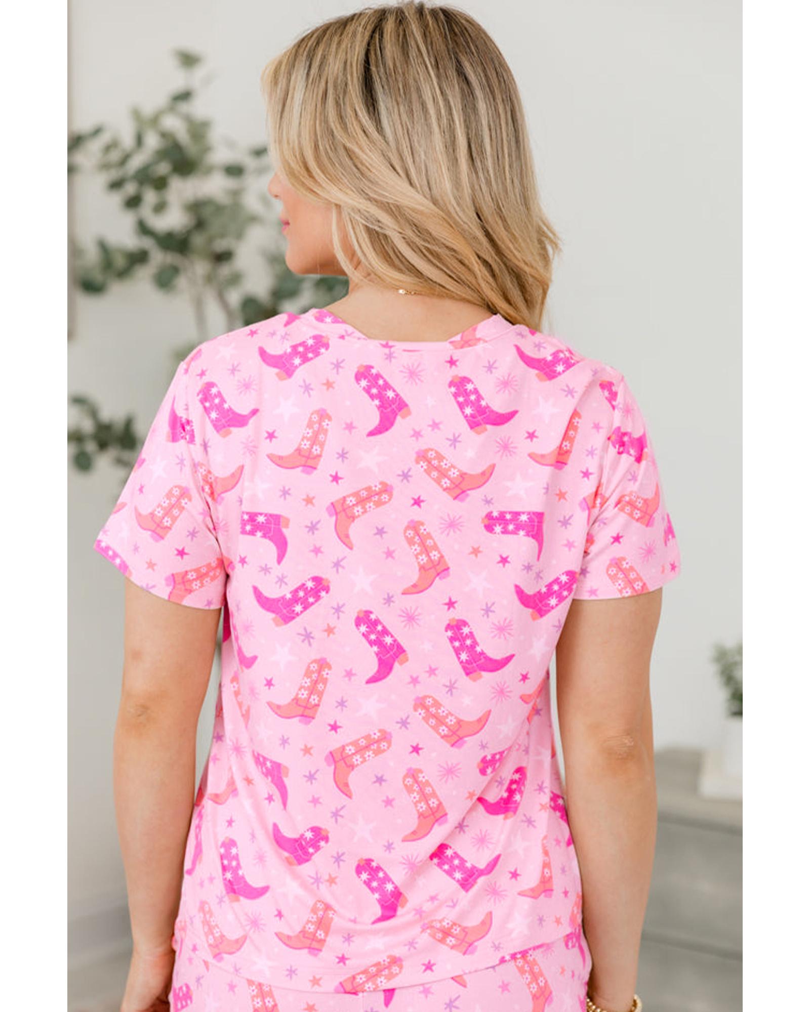 Pink Western Boots Printed Short 2pcs Lounge Set – S
