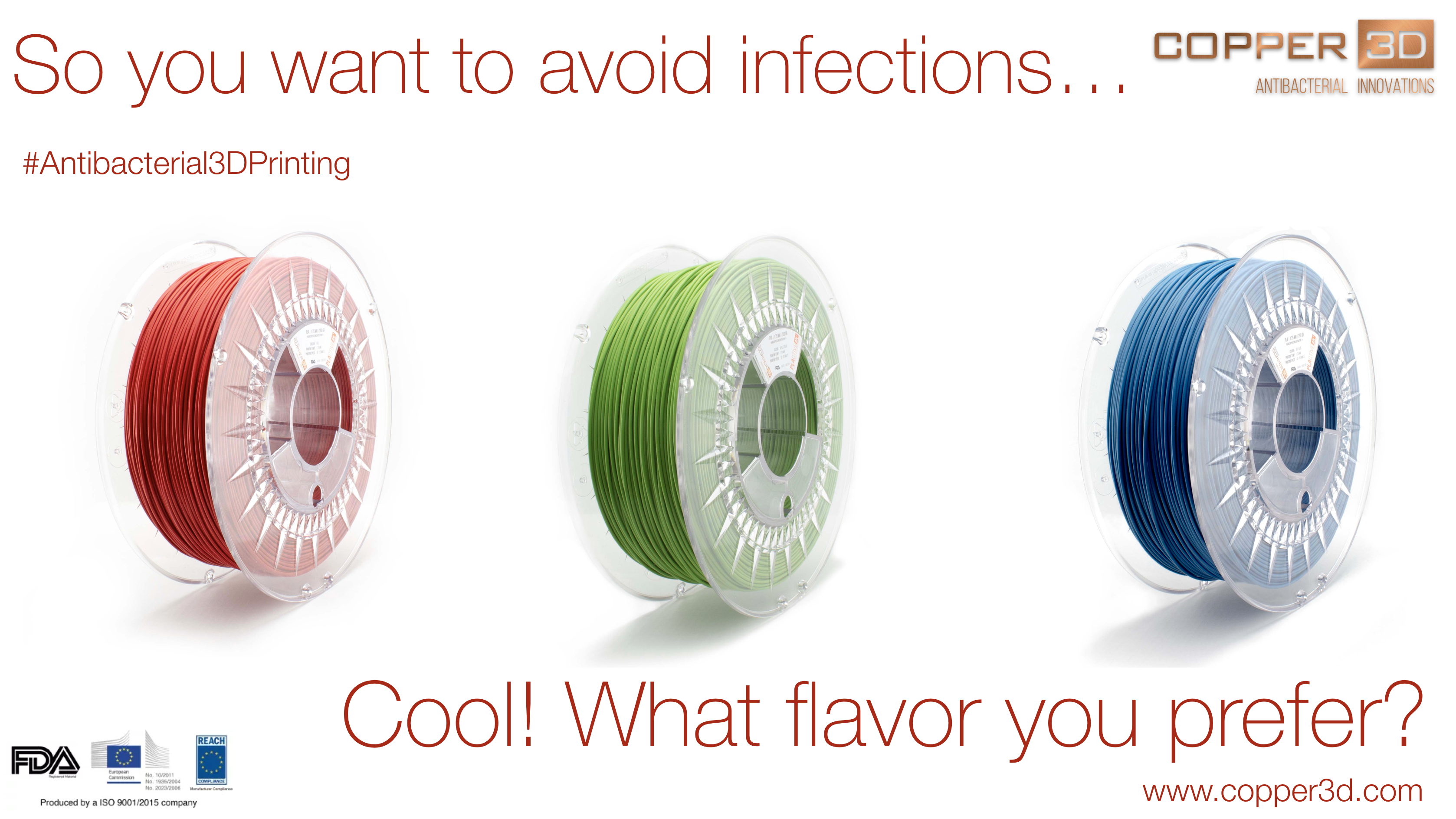 Copper 3D PLActiveis an innovative Nanocomposite 3D printer filament developed with proven high-quality EasyFil PLA compound and a patented, scientifically validated and highly effective Nano-Copper additive. PLActive filament is FDA registered and eliminates more than 99.99% of fungi, viruses, bacteria and a wide range of microorganisms.
