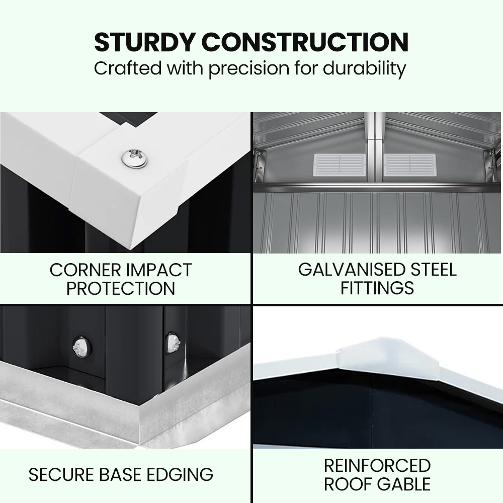 PlantCraft Galvanised Steel Garden Shed 2.58 x 2.07 x 2.02m, with 2 Sliding Doors, 4 Air Vents, Gable Roof, Floor Frame