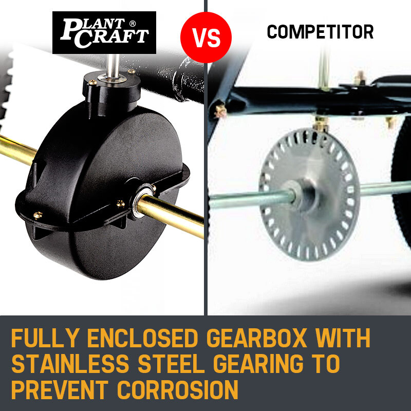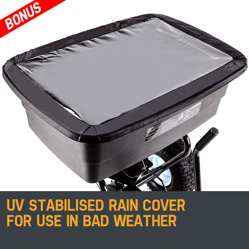 The quad-blade impeller ensures a smooth broadcast, while the handy flow control lever allows for super convenient material output adjustment on the go – it’s just a matter of shifting the handle! Furthermore, the Plantcraft spreader is designed to take all the knocks expected from rough terrain, and with rugged 14 inch pneumatic tyres you’ll venture to the far reaches of your property. There’s also a BONUS UV stabilised rain cover included, so you can get out and sow seeds even when the weather’s turned!