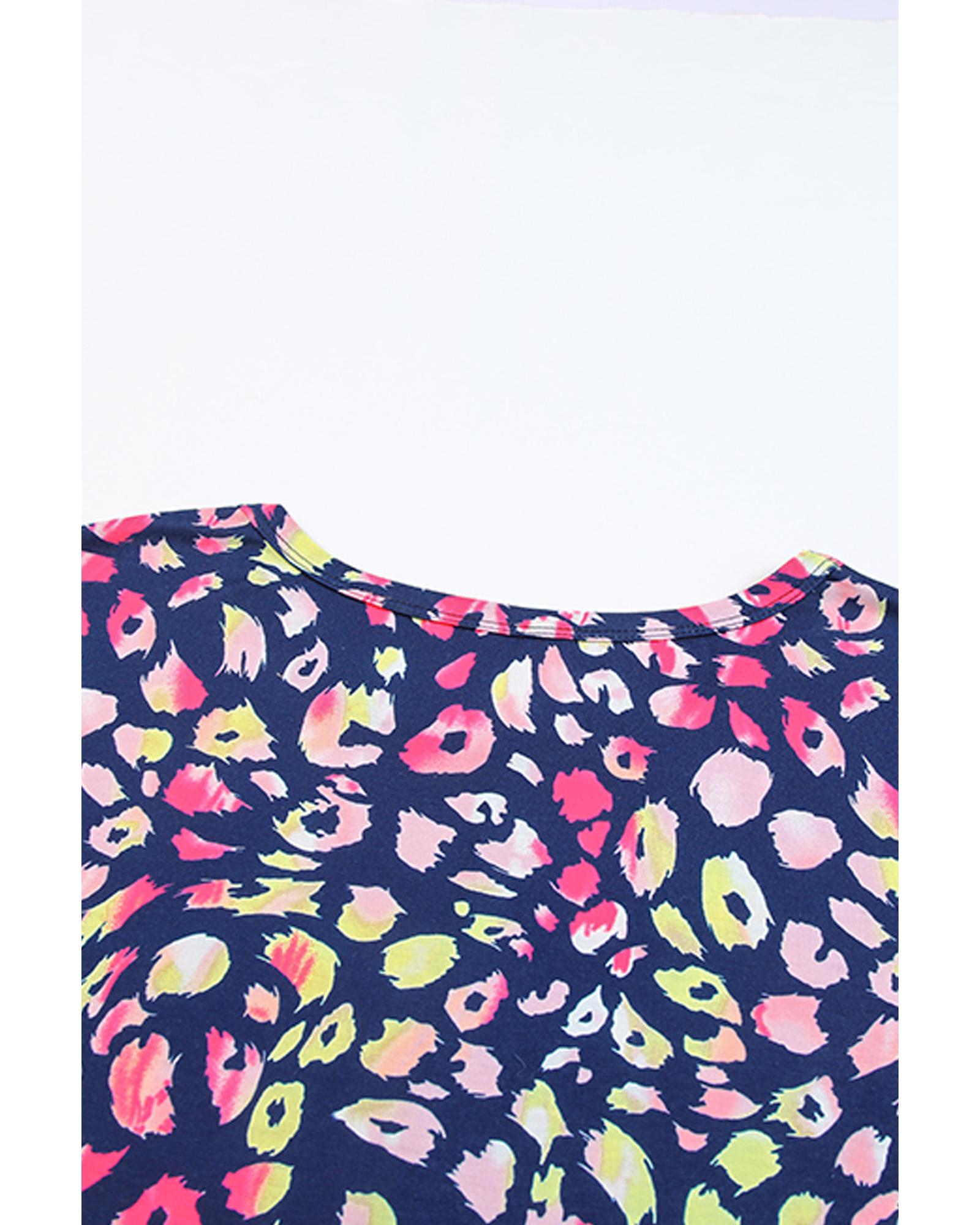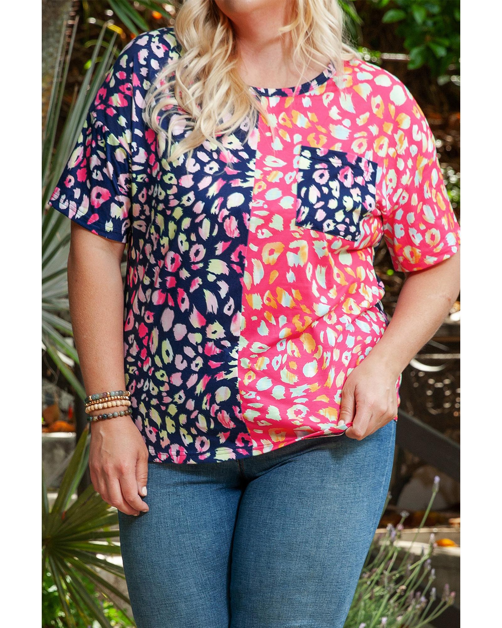 Plus Size Leopard Colorblock Short Sleeve Top – 1X