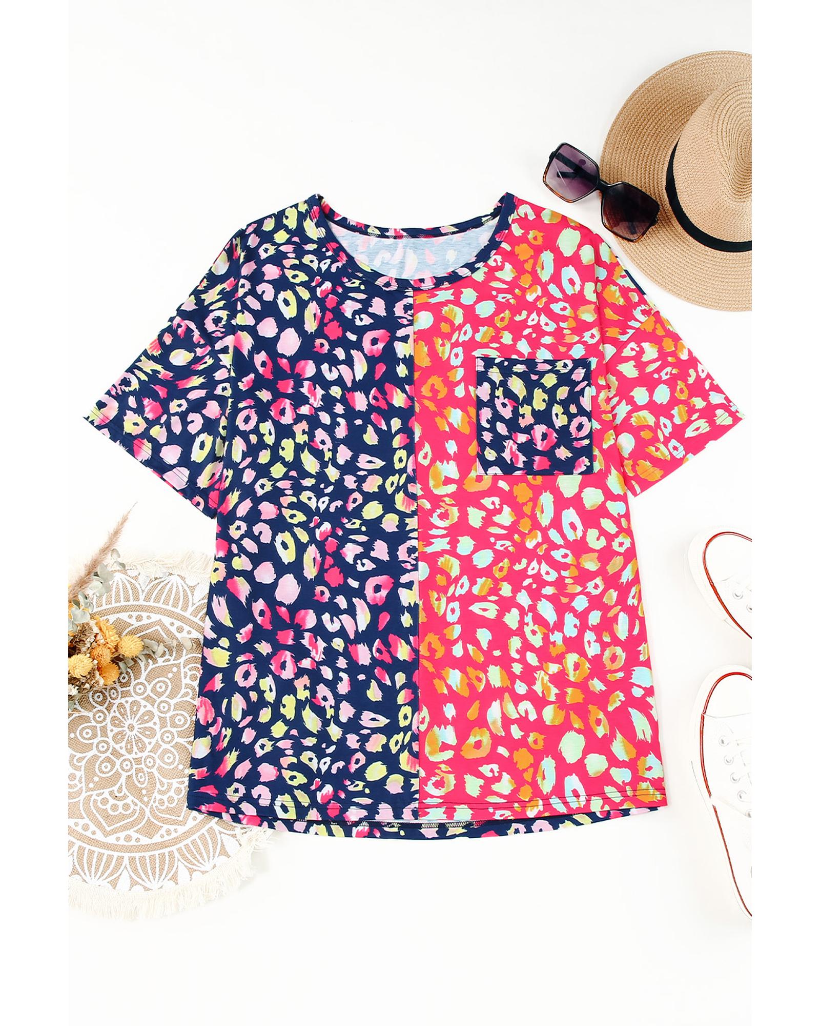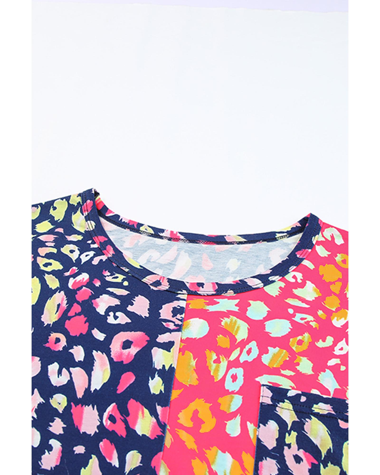 • Featured with a crew neckline short sleeves chest pocket and leopard patchwork