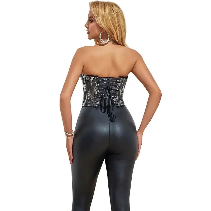 Plus Size Silver Sequin Crop Top With Lace Detail 14 Fishbones Support S-Xxxl – Xl