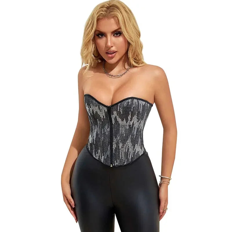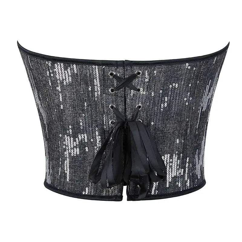 Plus Size Silver Sequin Crop Top With Lace Detail 14 Fishbones Support S-Xxxl – Xxxl
