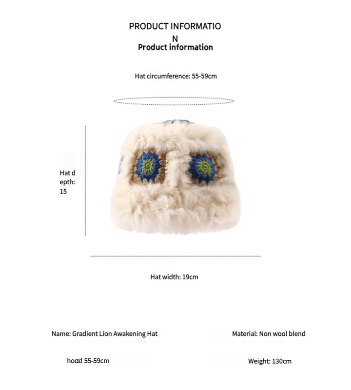 Add a touch of warmth and charm to your winter wardrobe with this Plush Floral Bucket Hat. Featuring a soft, plush exterior and a crocheted floral design, this hat combines coziness with a unique, stylish look. With a head circumference of 55-59cm, it fits most adults comfortably.This hat is perfect for keeping warm while making a fashion statement during colder months.