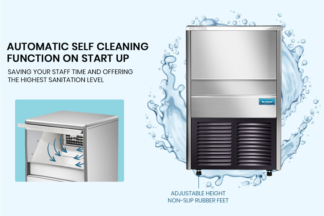 POLYCOOL Commercial Ice Maker Machine, up to 45kg/24hr, Donper Compressor, Undercounter, Freestanding