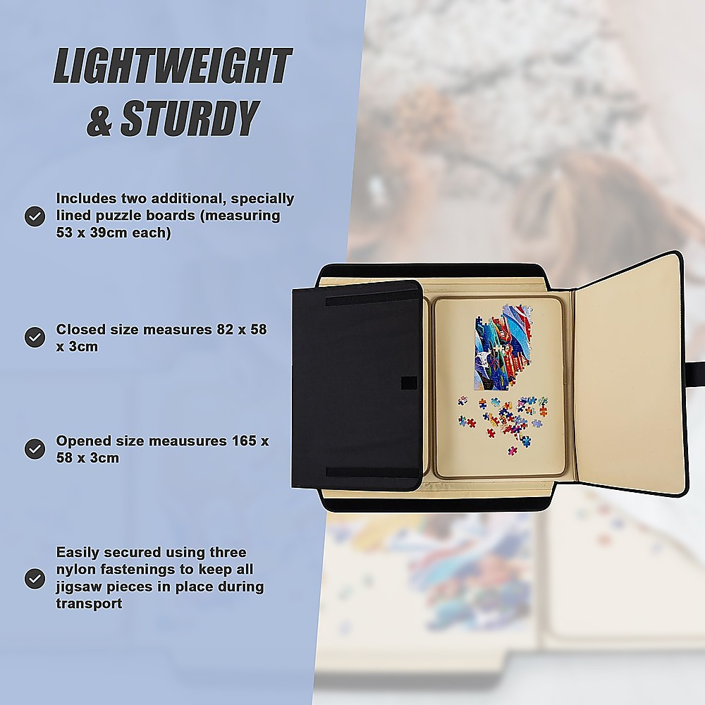 • Easily secured using three nylon fastenings to keep all jigsaw pieces in place during transport