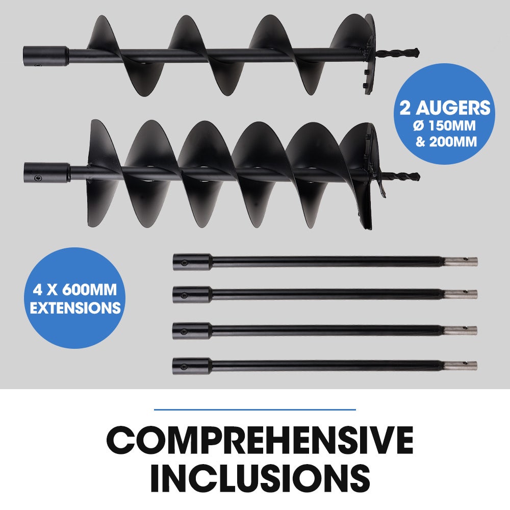 - 3 x Augers (100mm, 150mm, 250mm diameter)