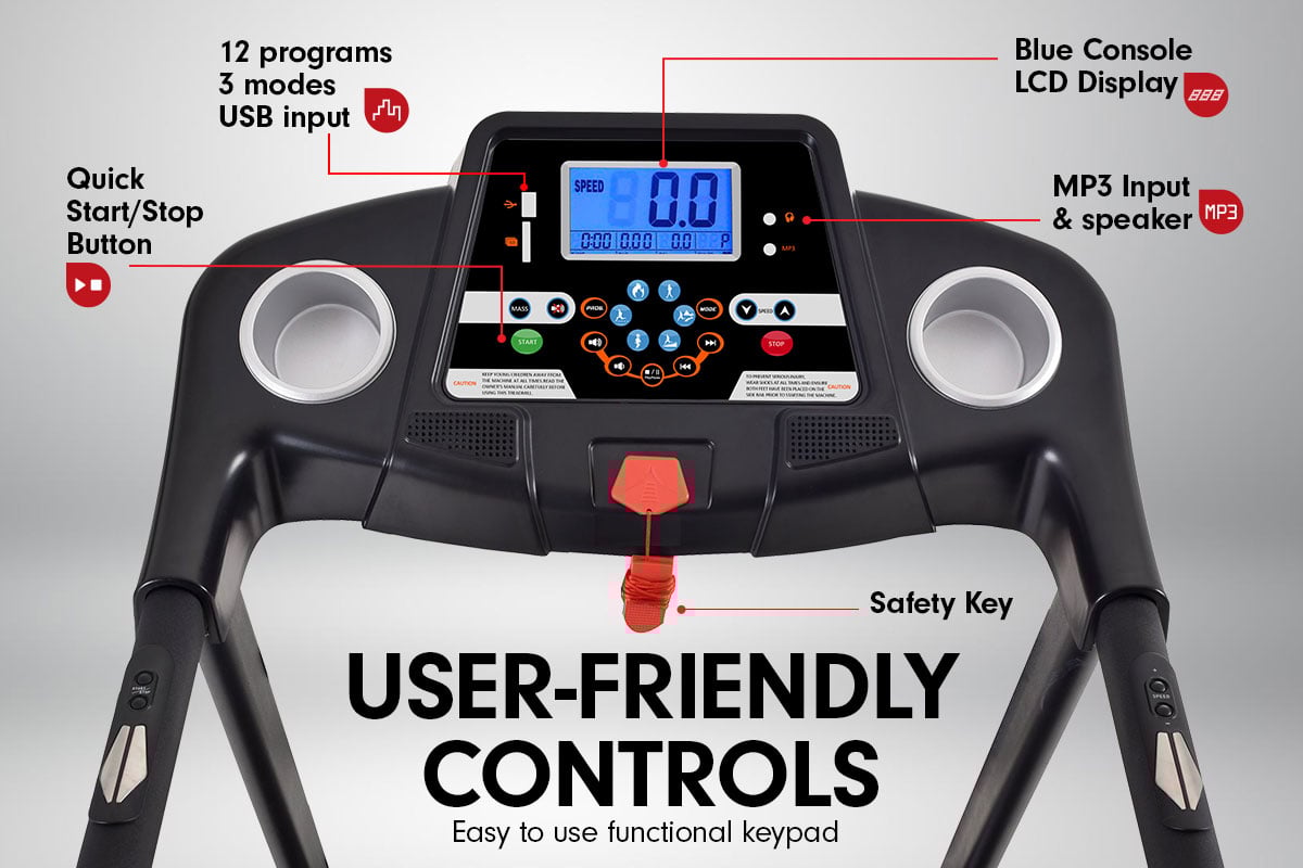 Monitor the running time, distance travelled, heart rate calories burned with the display screen so you can see your progress and set goals during your workout. Formulated with manual adjustable incline, 12 programs, 3 modes and speed function on an easy to use interface, target specific muscles that you want to train with ease or choose from the pre-set interval training programs.