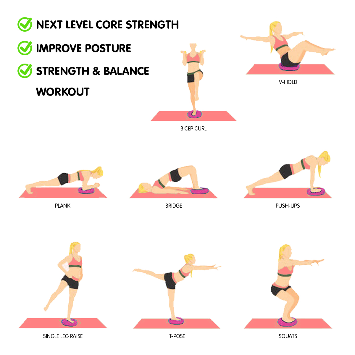 Improve posture, build strength, balance, and engage your core by adding an element of instability to your workout with the Stability Disc.