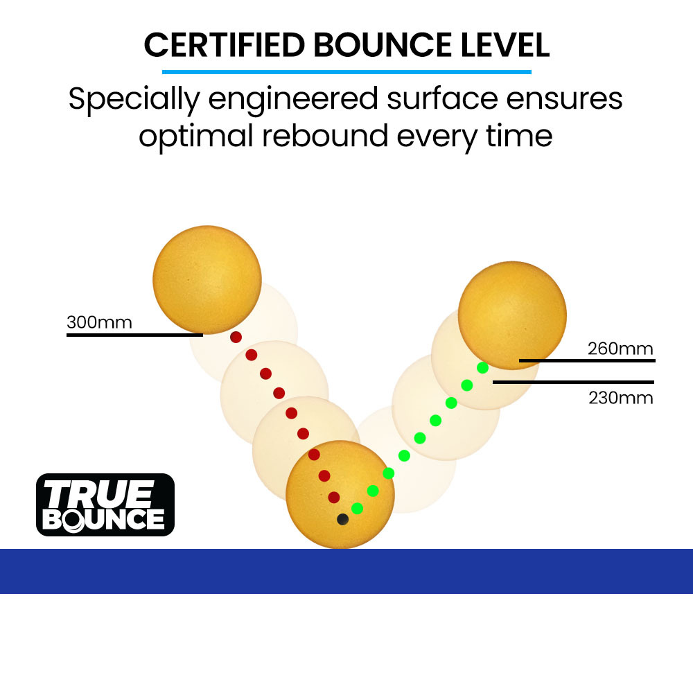 Our table is designed with meticulous attention to detail, making it the professional choice for both beginners and enthusiasts alike. With its TrueBounce specially engineered 15mm thick acrylic surface treatment, you can expect a playing surface that guarantees consistent ball rebound, allowing you to showcase your skills with precision shots every time.
