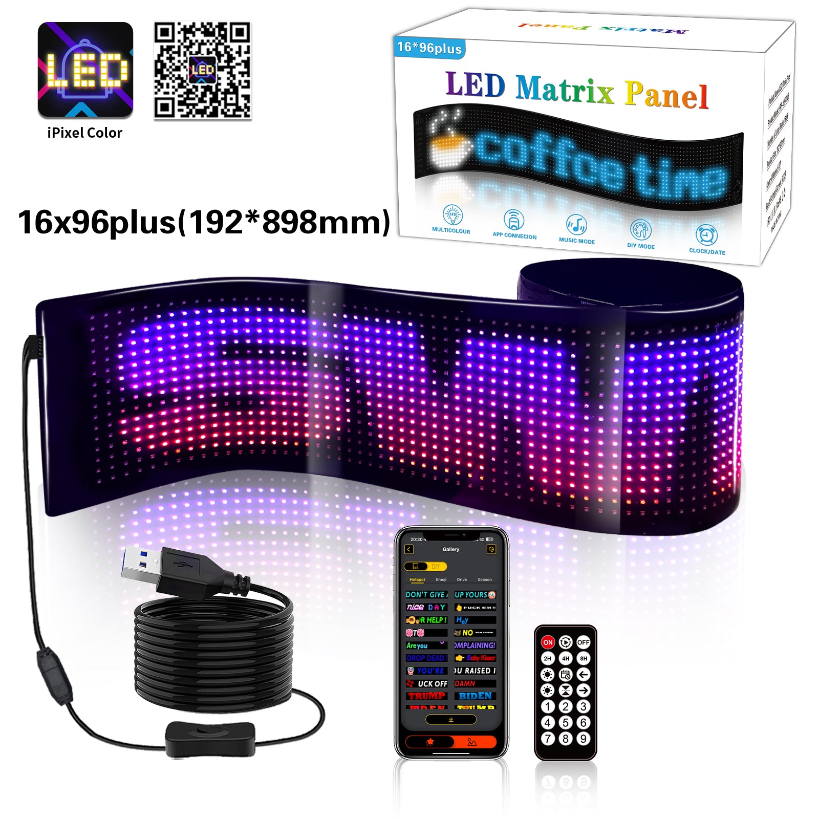 design is IP65 waterproof, making it durable and adaptable to various mounting spots. With full DIY functionality, you can display custom text and patterns to promote a business, share personal messages, or creatively express yourself on the go.