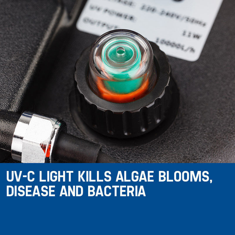 Compact and easy to set-up, the UV-C Series with its UV-C light, kills algae blooms, disease, and bacteria.