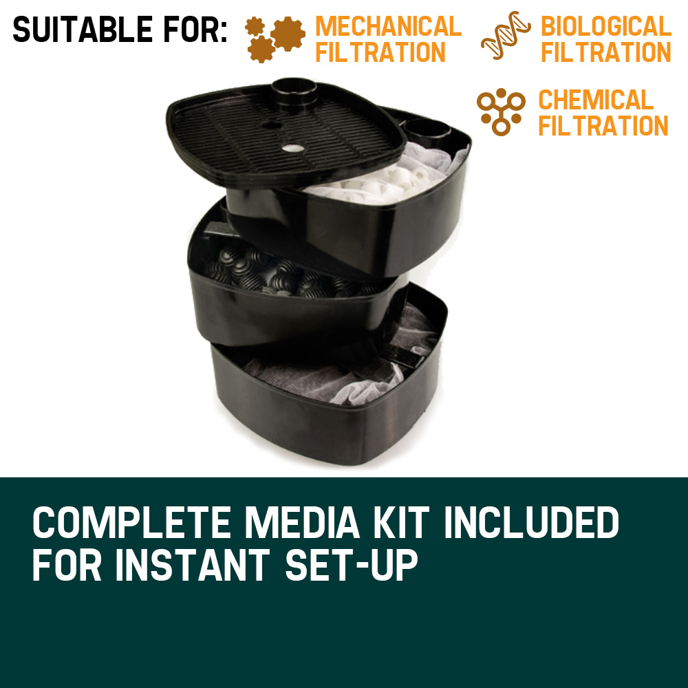 Mechanical Filtration – Add mechanical filter pads to effectively remove unsightly particles from the water, including fish excrement, sludge, uneaten food and dust.