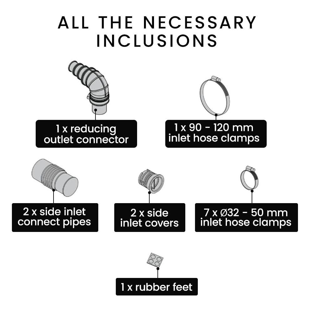 - 1 x ⌀ 90-120mm Inlet hose clamps