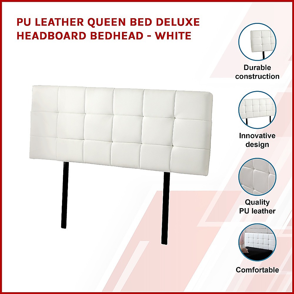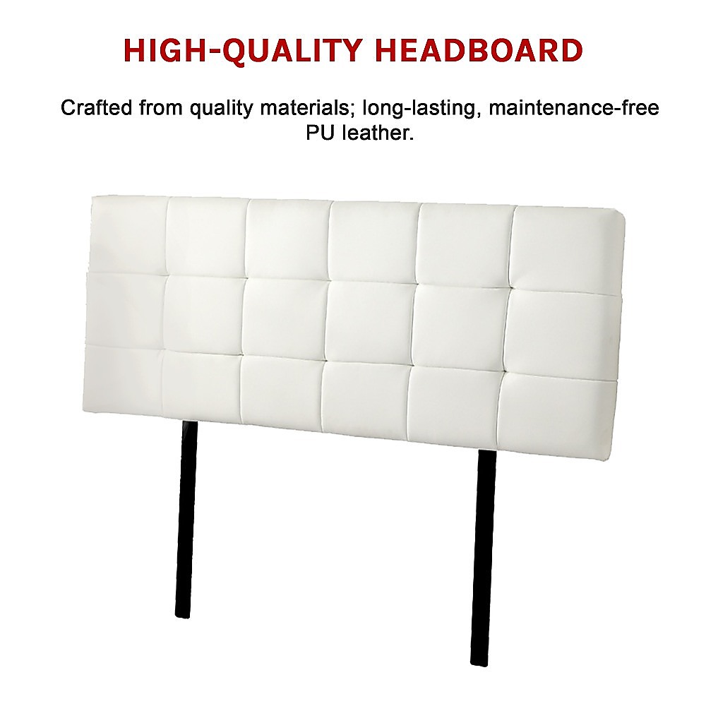 PU Leather Queen Bed Deluxe Headboard Bedhead – White
