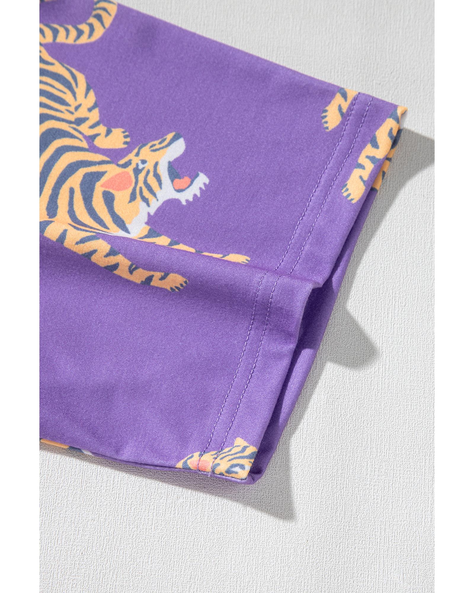 Purple Allover Tiger Printed Patch Pocket Loose T Shirt – XL