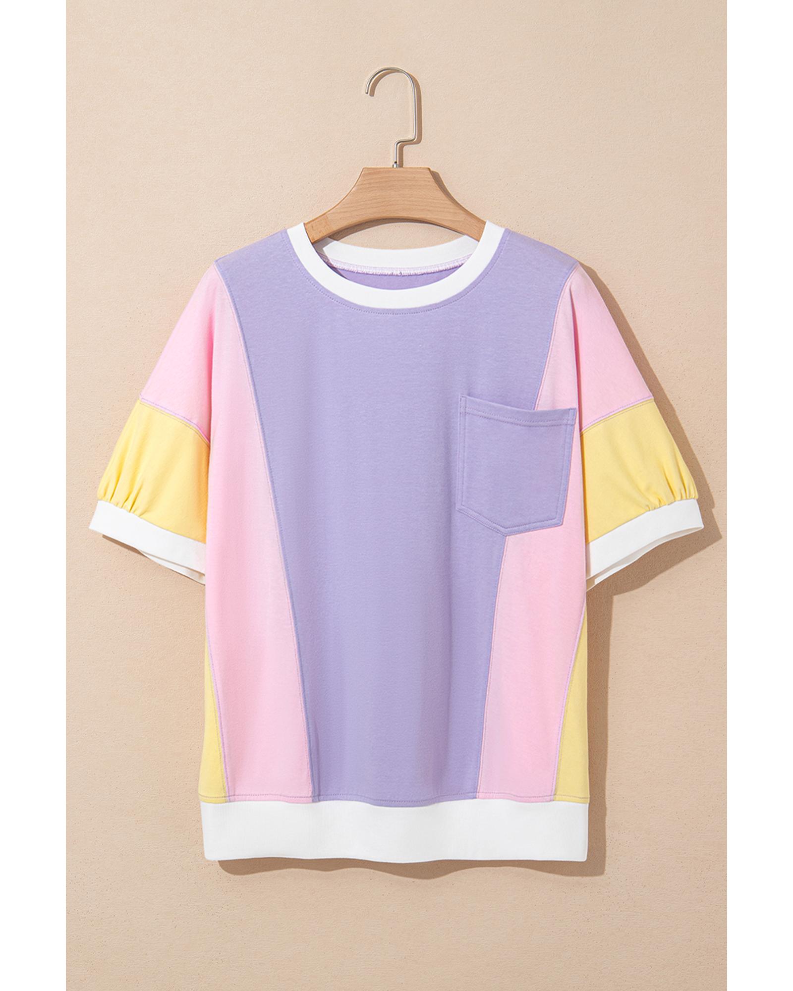 Purple Color Block Patchwork Half Sleeve Oversized T Shirt – L