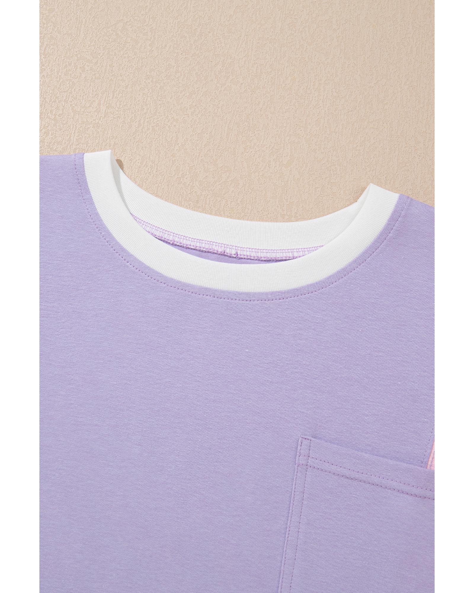 Purple Color Block Patchwork Half Sleeve Oversized T Shirt – XL