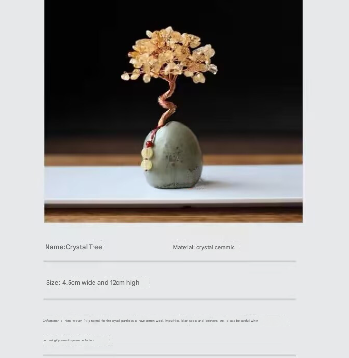Natural Crystal Wealth Tree – 12cm Feng Shui Decor, Elegant Office Desk Ornament