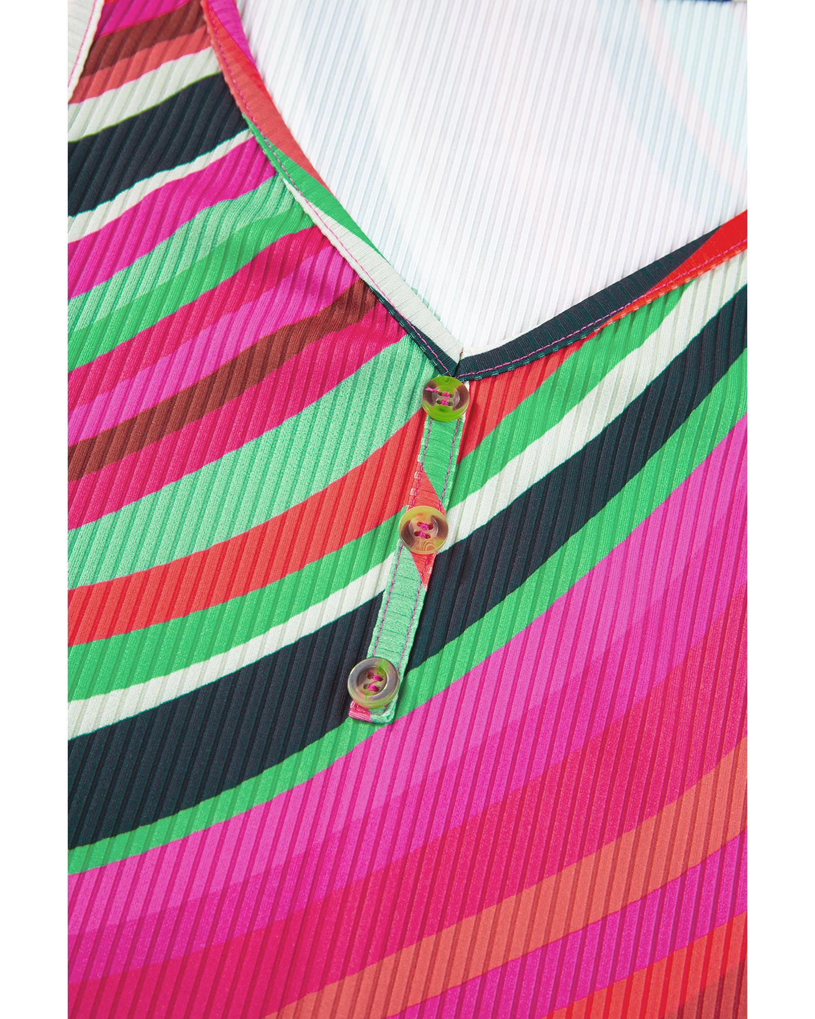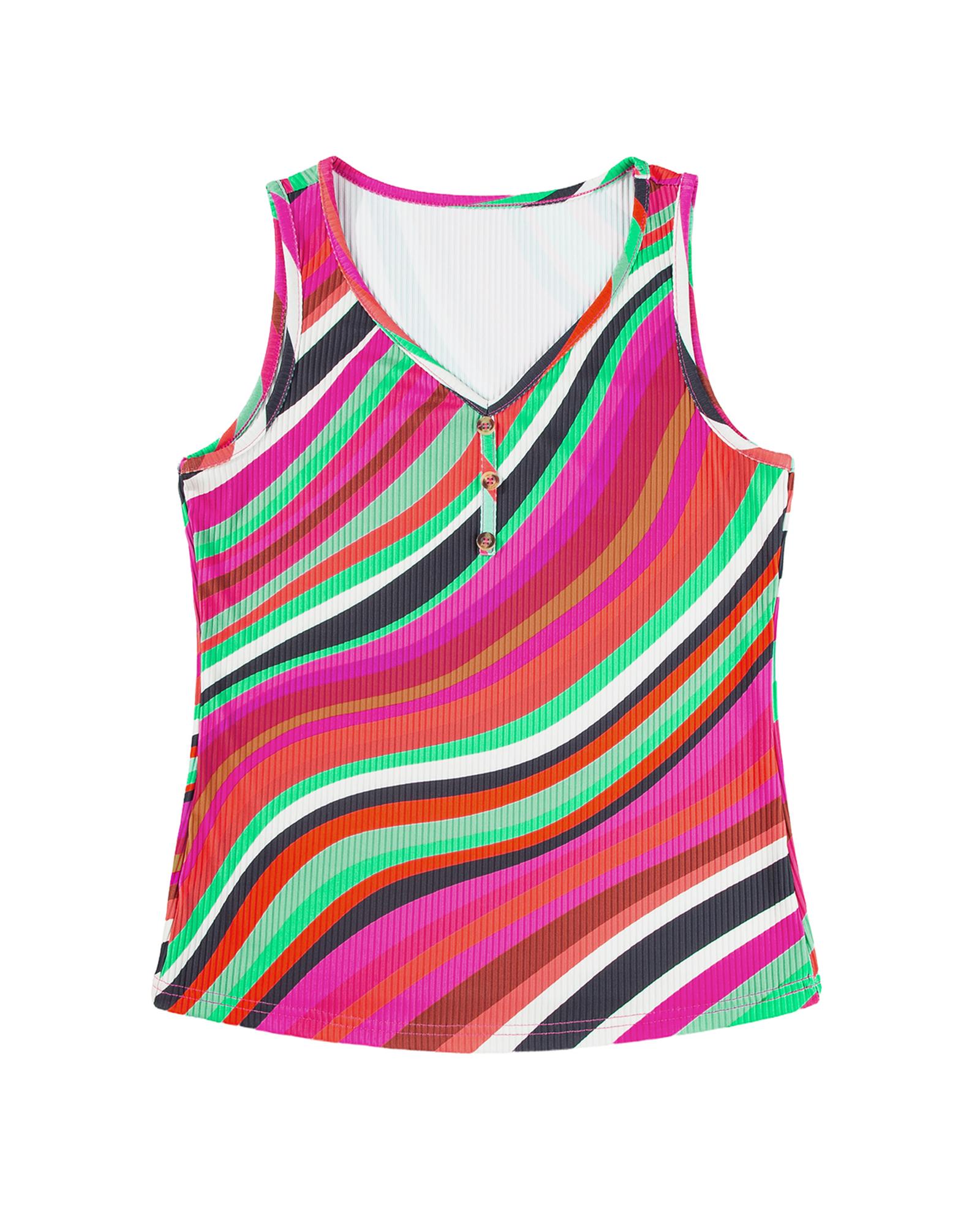 • Purple Wavy Striped Buttoned V Neck Tank Top