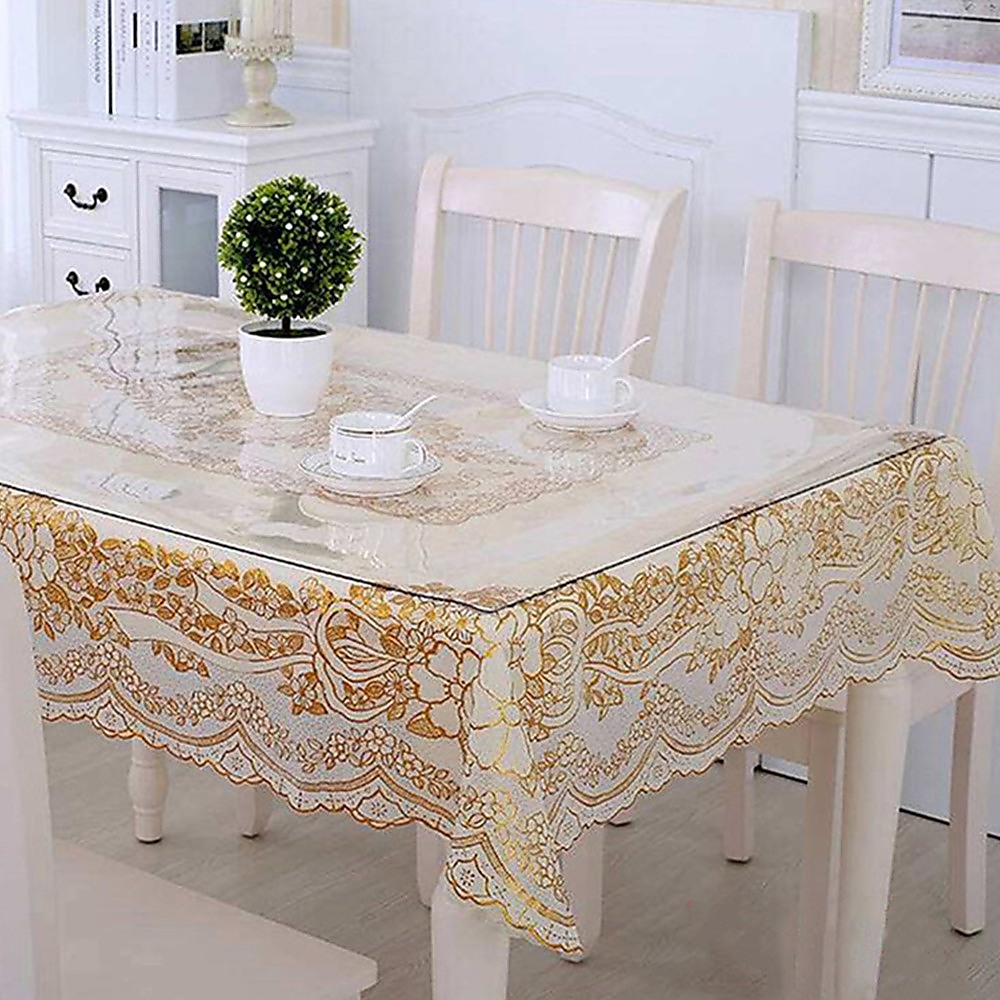 - Transparent nature is a great way to show off a feature tablecloth under the tablecloth protector