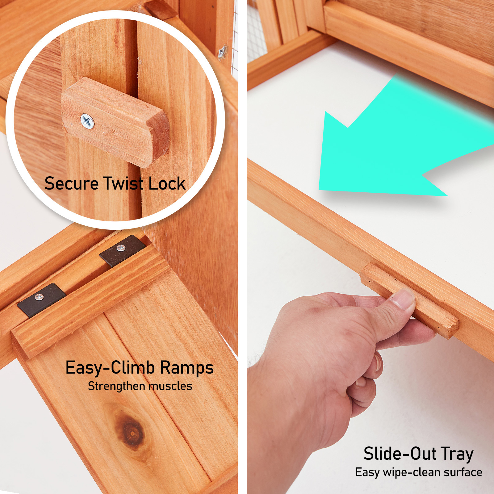 With our Paw Mate MANSION pet hutch, you have a piece of mind as it gives them protection and plenty of space to run. As constructed from non-toxic fir wood and galvanised mesh wire, it ensures durability, predator-proof, and insect resistance. This spacious and double-level enclosure allows sufficient open ground floor for grazing and exercise, given that hopping up and down the ramp can strengthen your pets’ muscles.