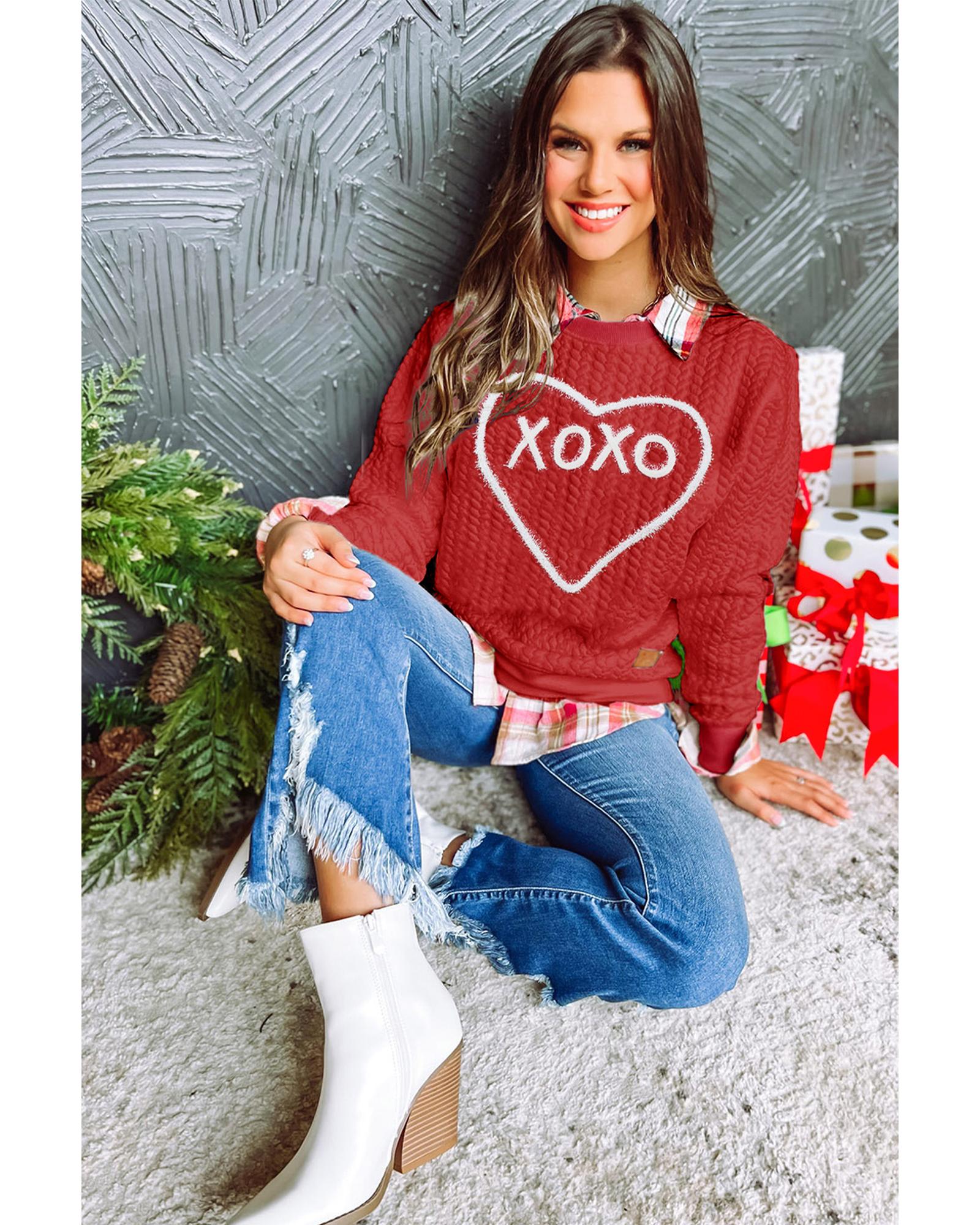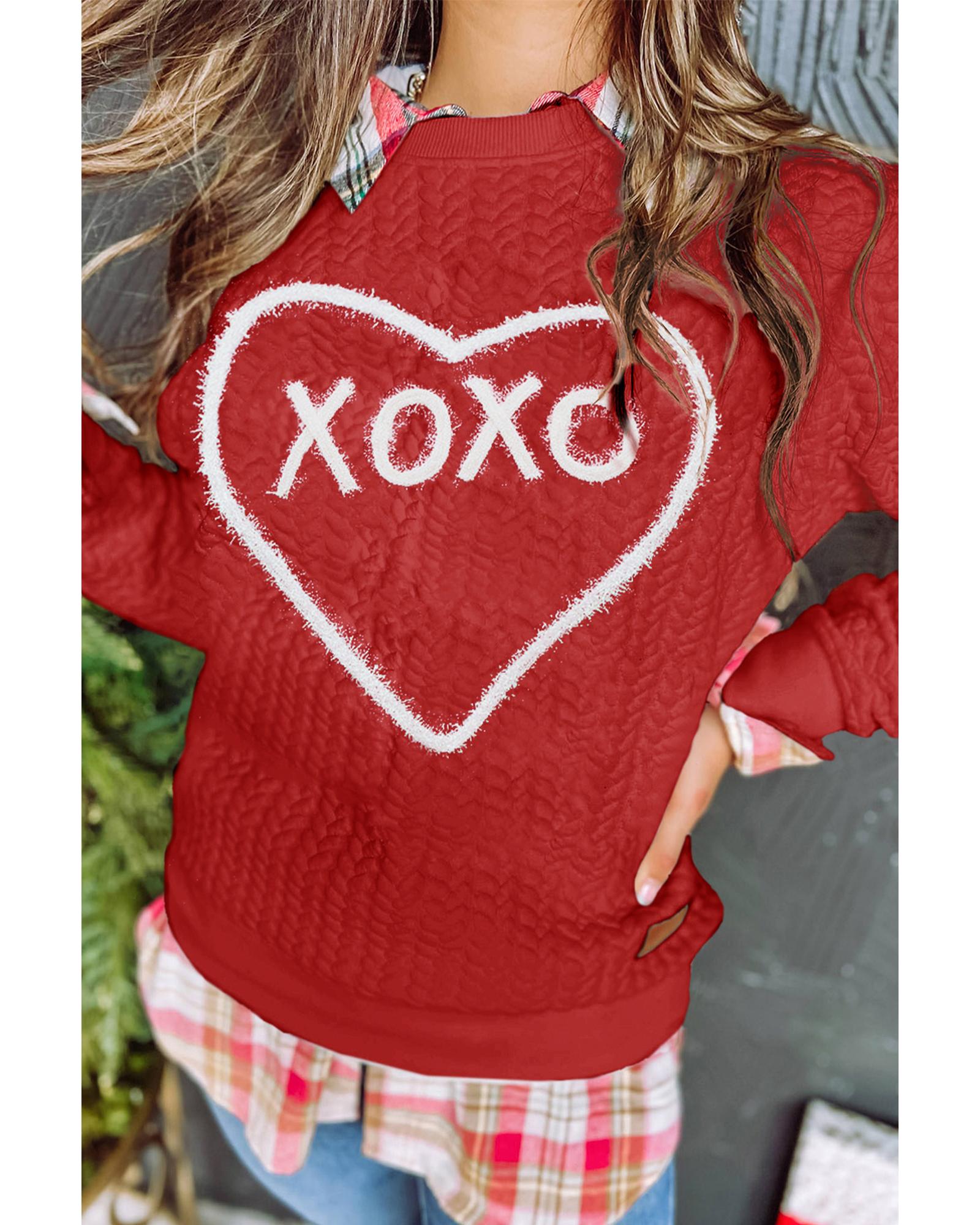 - Racing Red Heart XOXO Chenille Embroidered Textured Sweatshirt