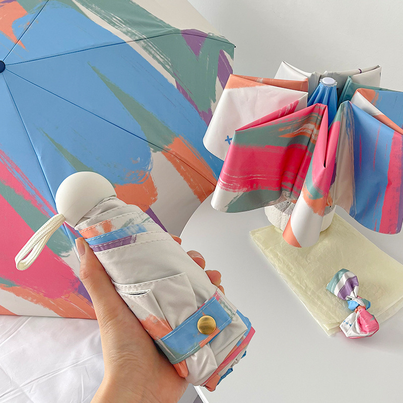 Rainbow Curve Mini 5-Fold Umbrella – Portable, Anti-UV, Black Glue Coating