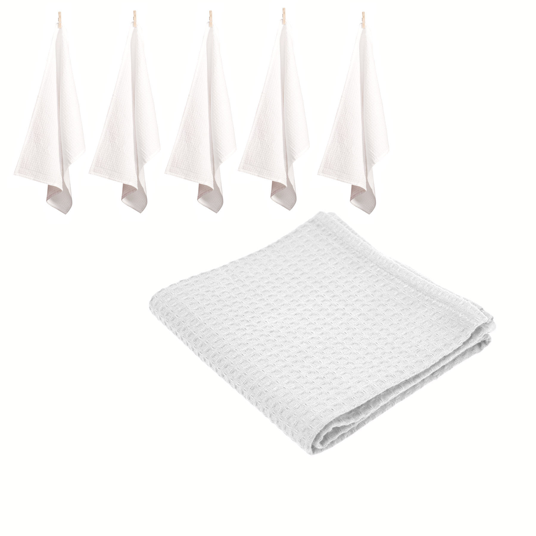 Rans Set of 6 Cotton Waffle Tea Towels 50×70 cm – White