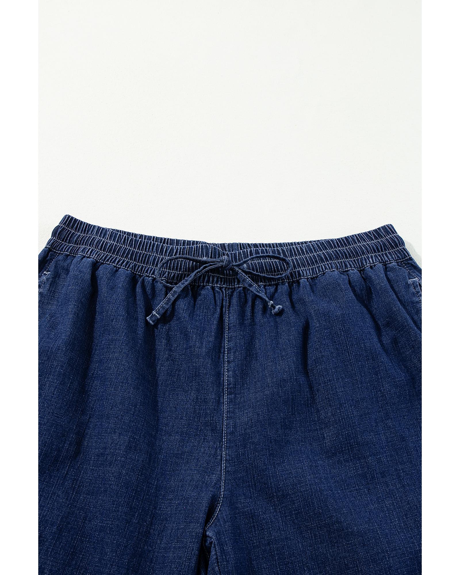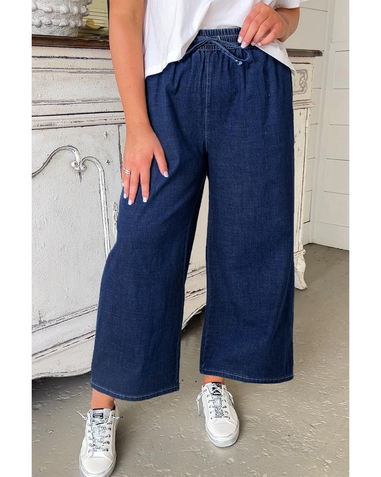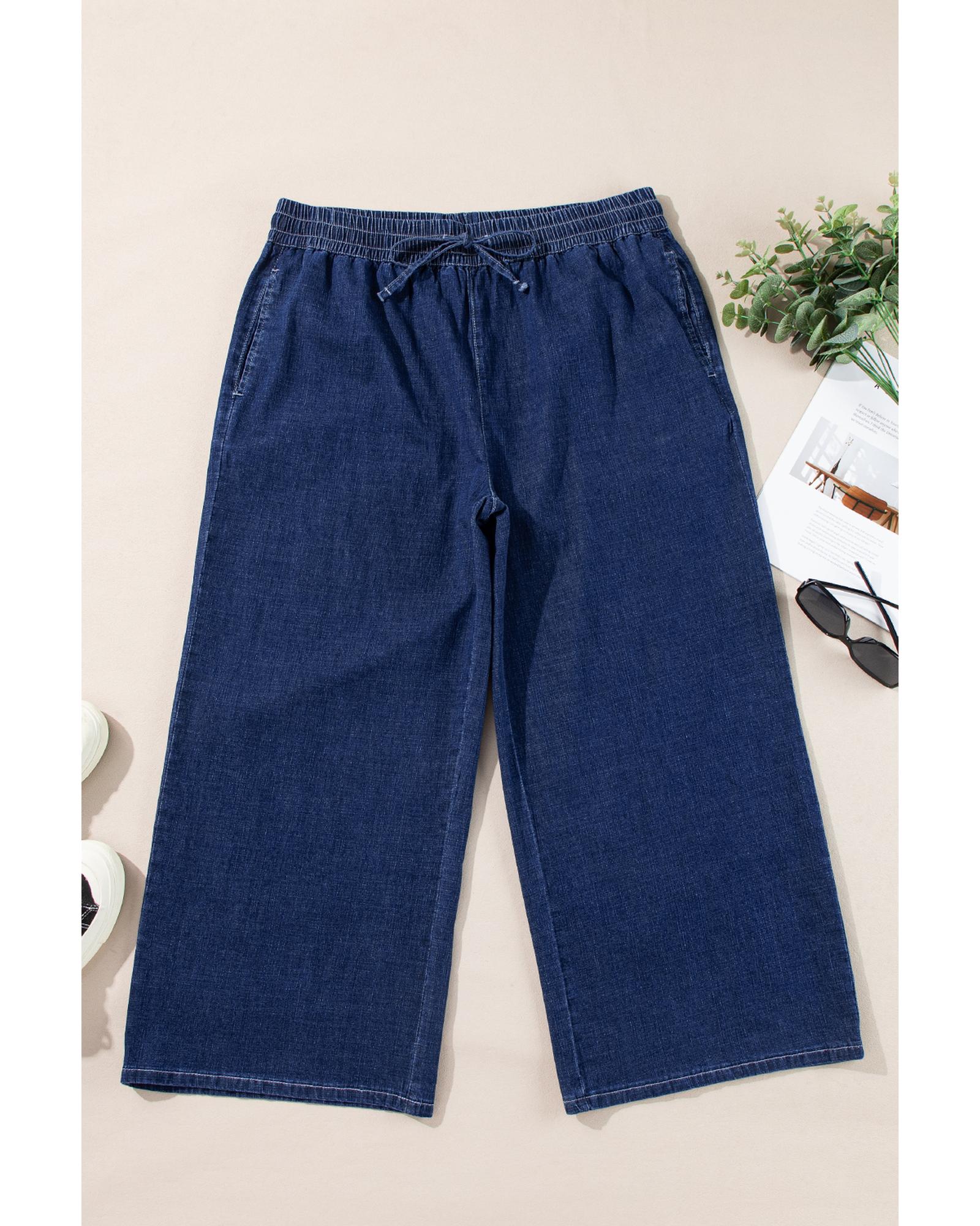 Real Teal Plus Size Drawstring High Waist Wide Leg Casual Jeans – 2X