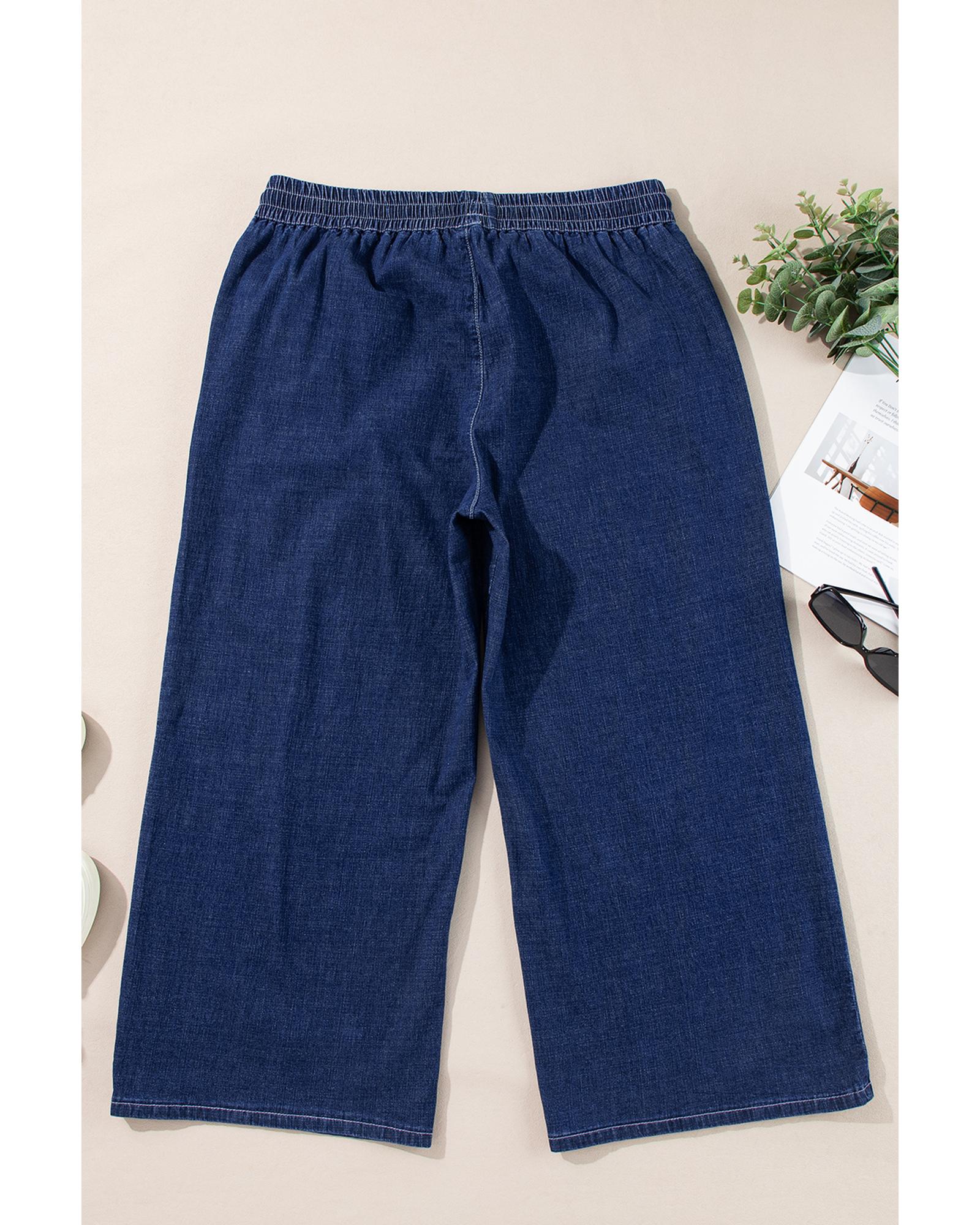 Real Teal Plus Size Drawstring High Waist Wide Leg Casual Jeans – 3X
