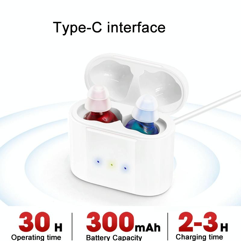 • 1 x Rechargeable Cic Hearing Aids Type C Port Invisible Red / Blue